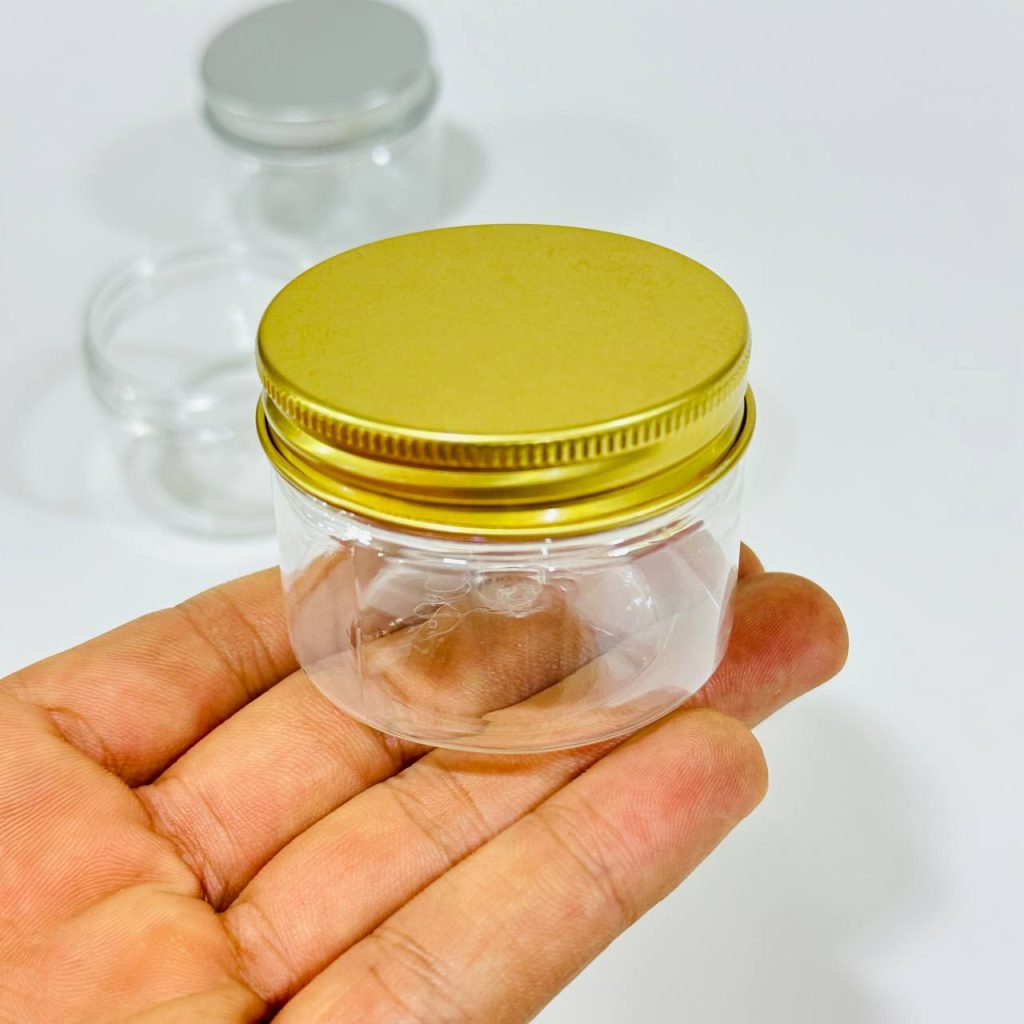 علب بلاستيك شفافة لحفظ المنتجات والكريمات غطاء فضي حجم 100 & 200 مل