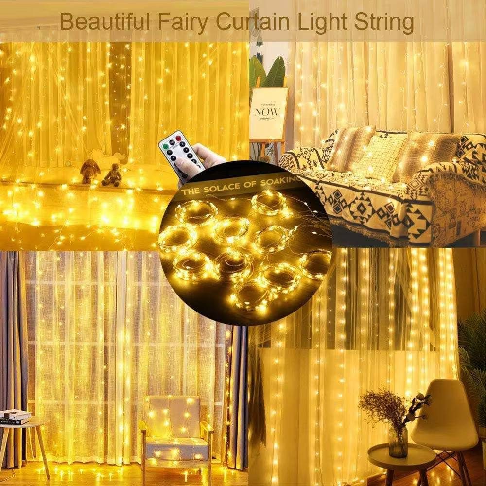 سرب ستارة اضاءة اصفر مع جهاز تحكم لزينة ديكور المنزل و رمضان
