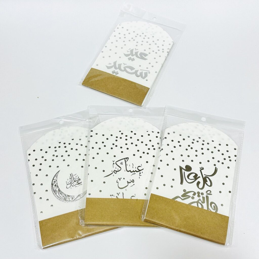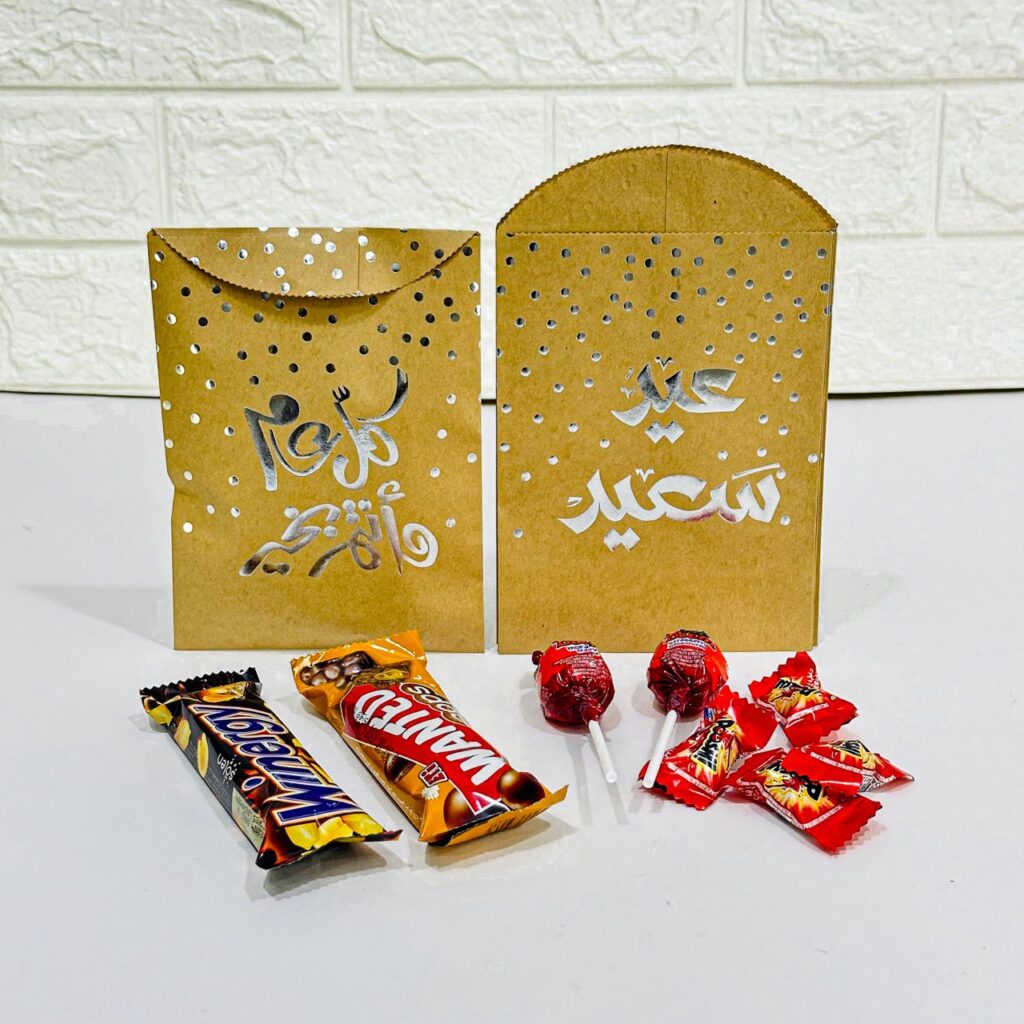 ظرف عيدية أبيض كتابة فضية للأطفال عبوة 12 ظرف