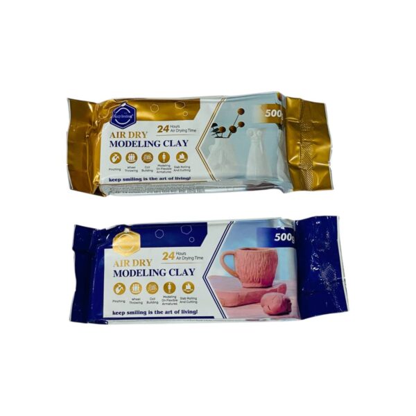 صلصال طين جاف للأعمال الفنية سهل التشكيل 500 جرام باللون الأصلي والأبيض