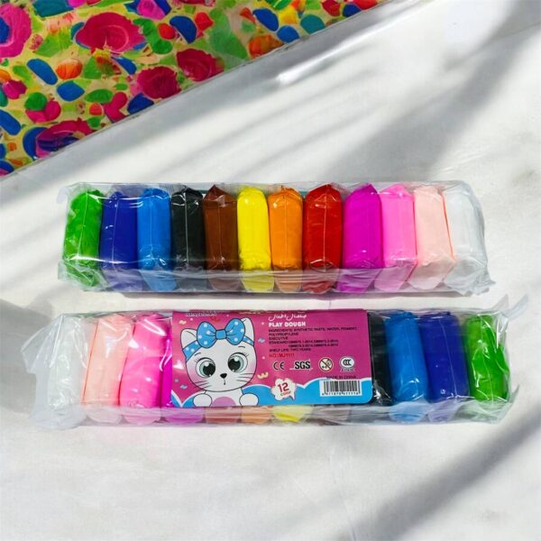 طقم صلصال 12 قطعه مع قوالب في علبة تحافظ عليه من الجفاف