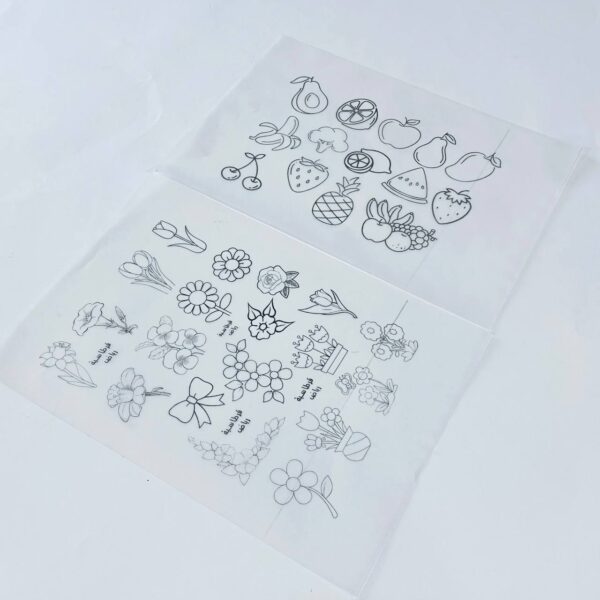 ورق شف رسومات لتزين كراسات الأطفال زهور وفواكة