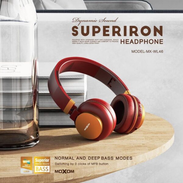 السعر الأصلي هو: 58.00 د.ل.44.00 د.لالسعر الحالي هو: 44.00 د.ل. Sold By: متجر رياضسماعة رأس بلوتوت من MOXOM أحمر وذهبي صوت صافي