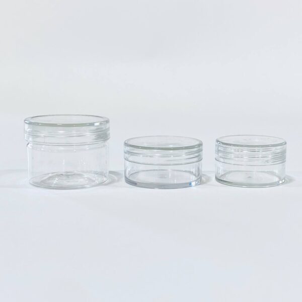 علب بلاستيك شفافة لحفظ المنتجات والكريمات غطاء فضي حجم 100 & 200 مل