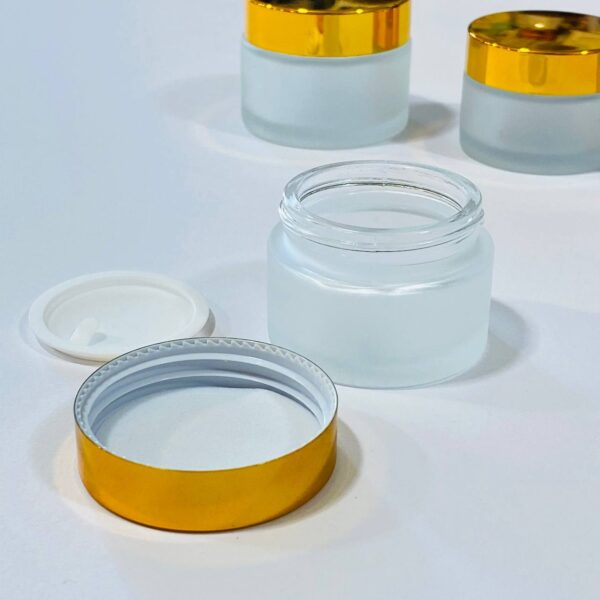 عبوة زجاجية فاخرة معتمة للكريمات عبوة 30 & 50 مل مع غطاء حماية ومغطة ذهبية