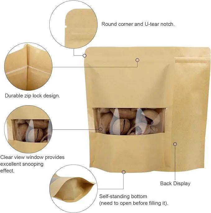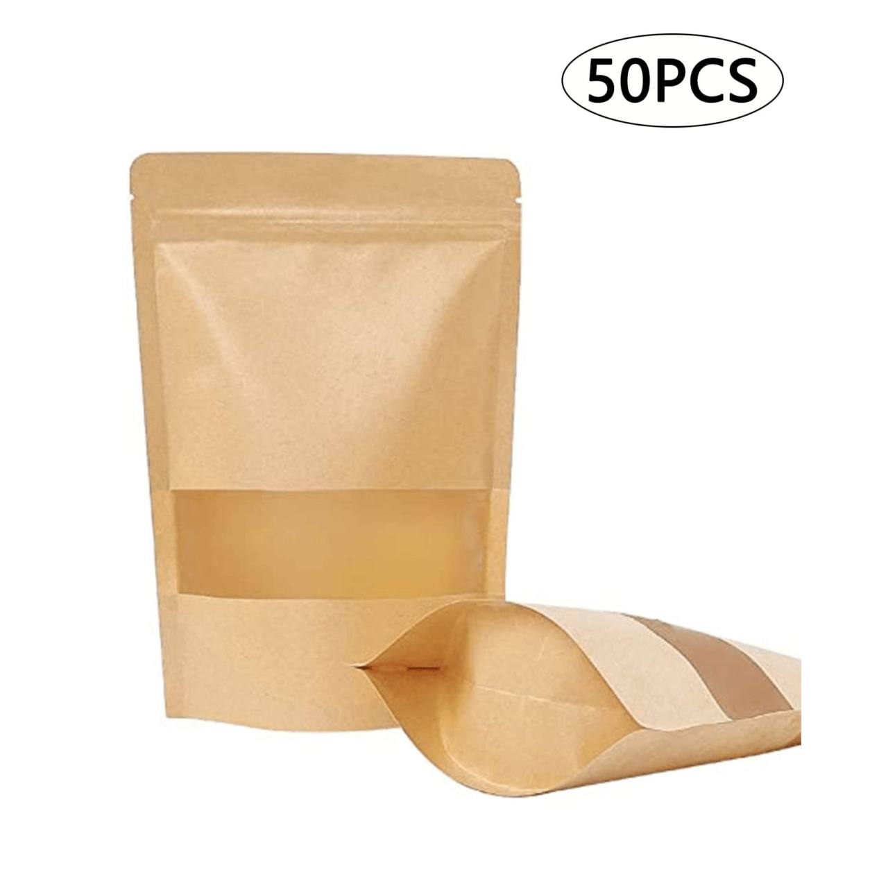 أظرف توزيعات لون بني مقاس 14×9 سم عبوة 50 ظرف للمكسرات والقهوة والبهارات اغلاق محكم