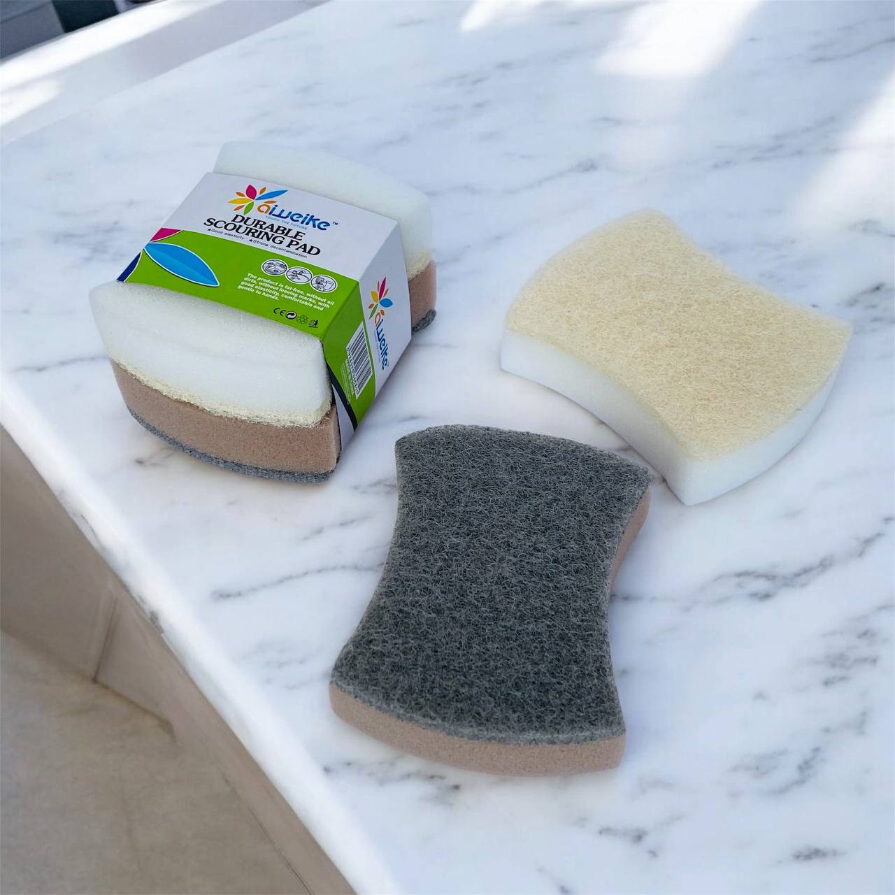 اسفنجة وجهين لغسل الأواني وادوات المطبخ 2 قطع ، وجه خشن ووجه ناعم