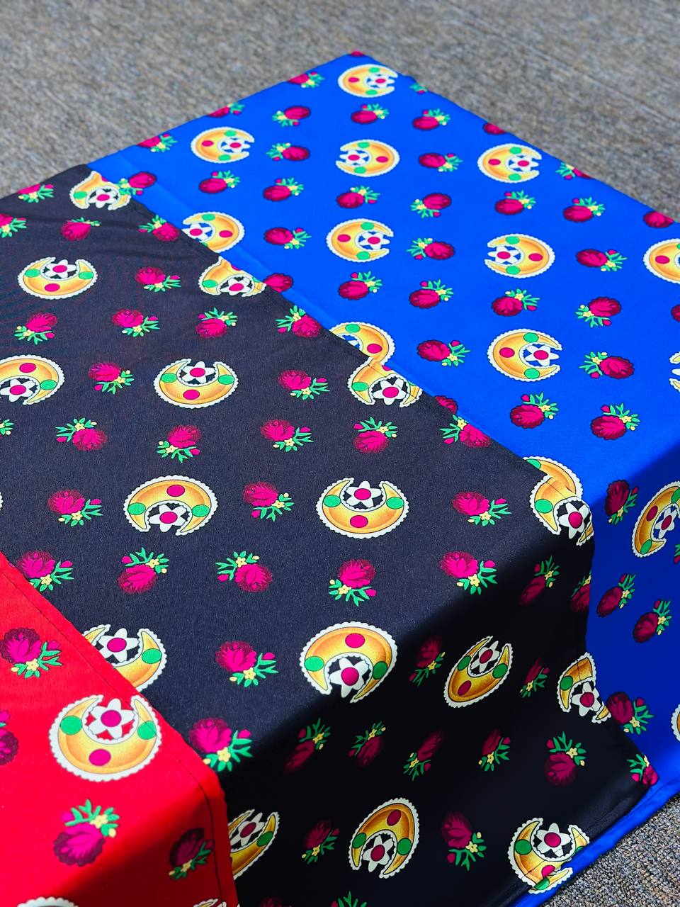بخشة رمضان ترند ، تصميم هلال وردة ، مفرش جلوس وطاولة 3 الوان