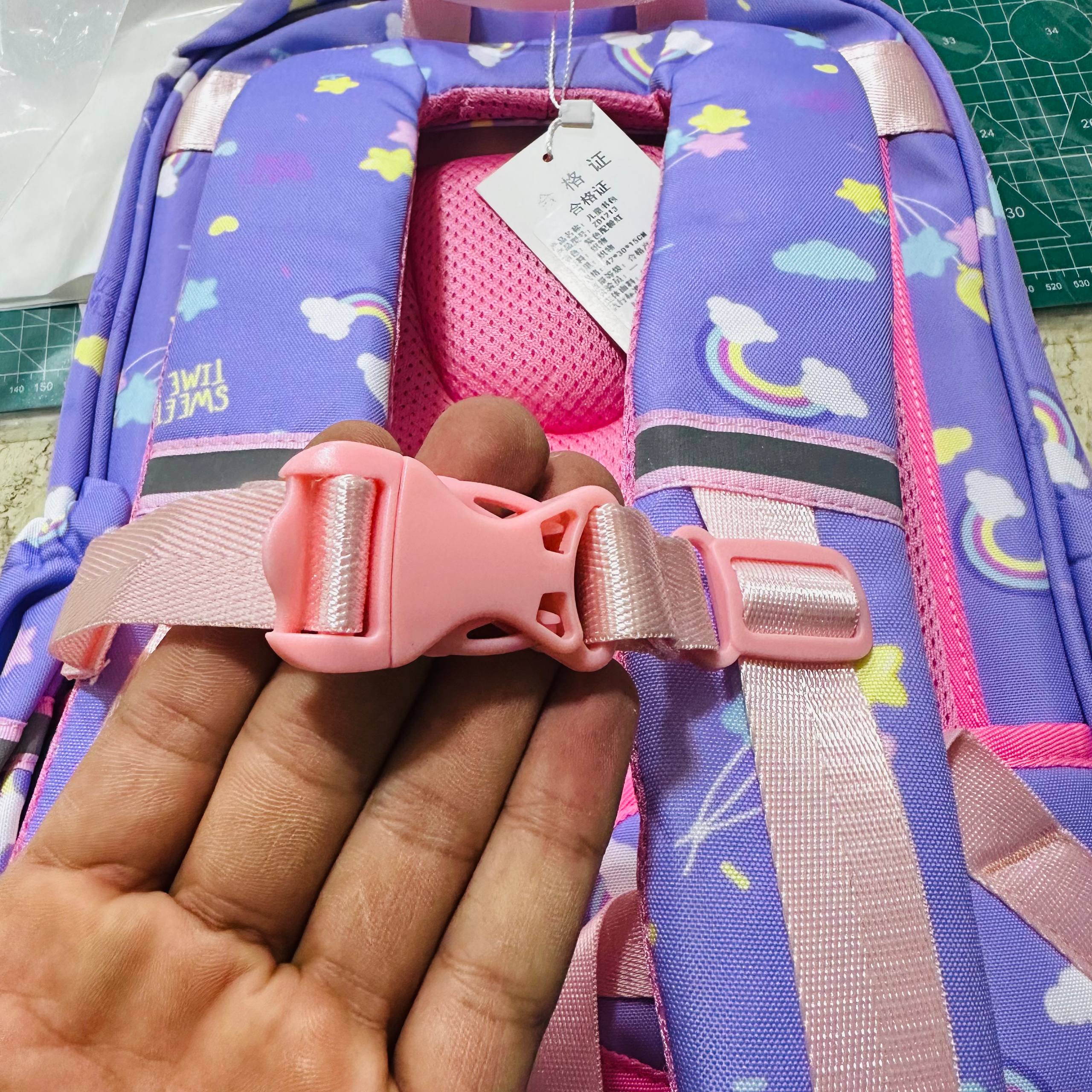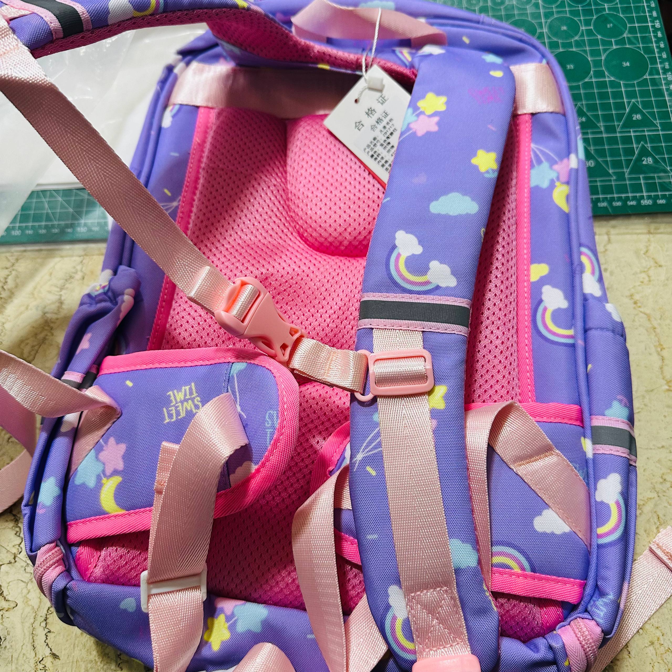 حقيبة فاخرة يونيكورن باللون البنفسجي الفاتح مع اسفنج حماية للظهر مناسبة للصف الثاني إلى الرابع