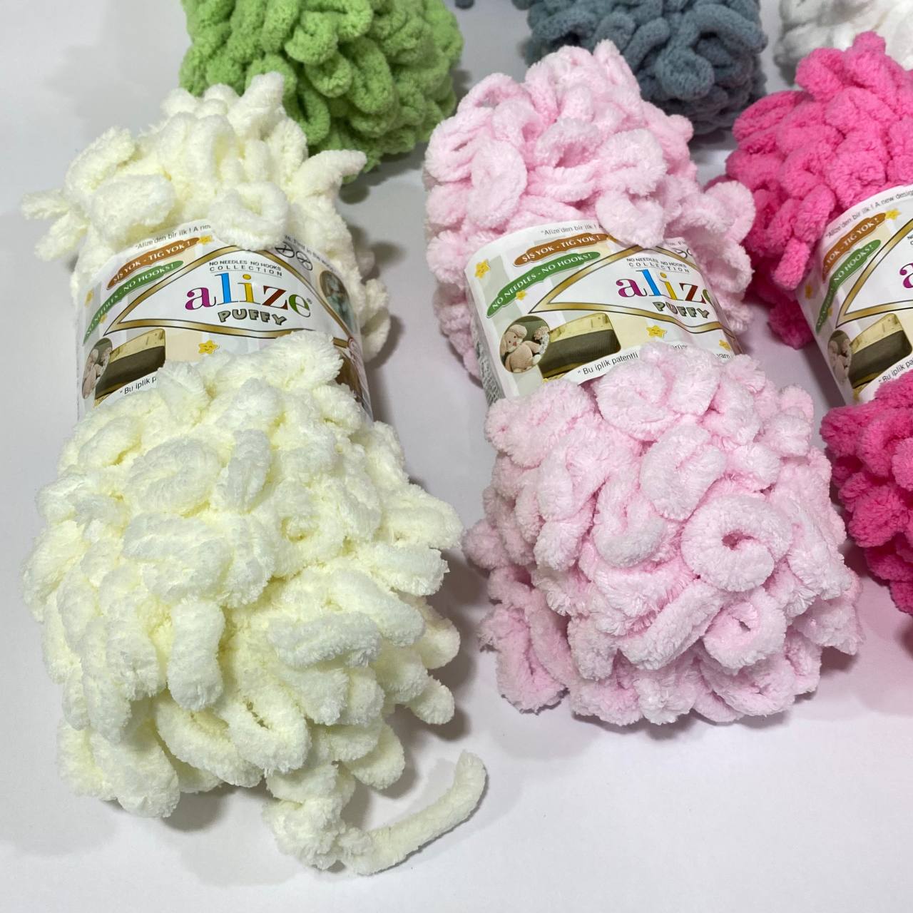 - هذا المنتج هو خيوط Alize Puffy، وهي نوع من الخيوط السميكة الناعمة التي تُستخدم في الحياكة اليدوية بدون إبرة. الخيوط مزودة بحلقات مدمجة تتيح لك صنع مشاريع الحياكة بسهولة عن طريق تشبيك الحلقات ببعضها بدلاً من استخدام أدوات الحياكة التقليدية.