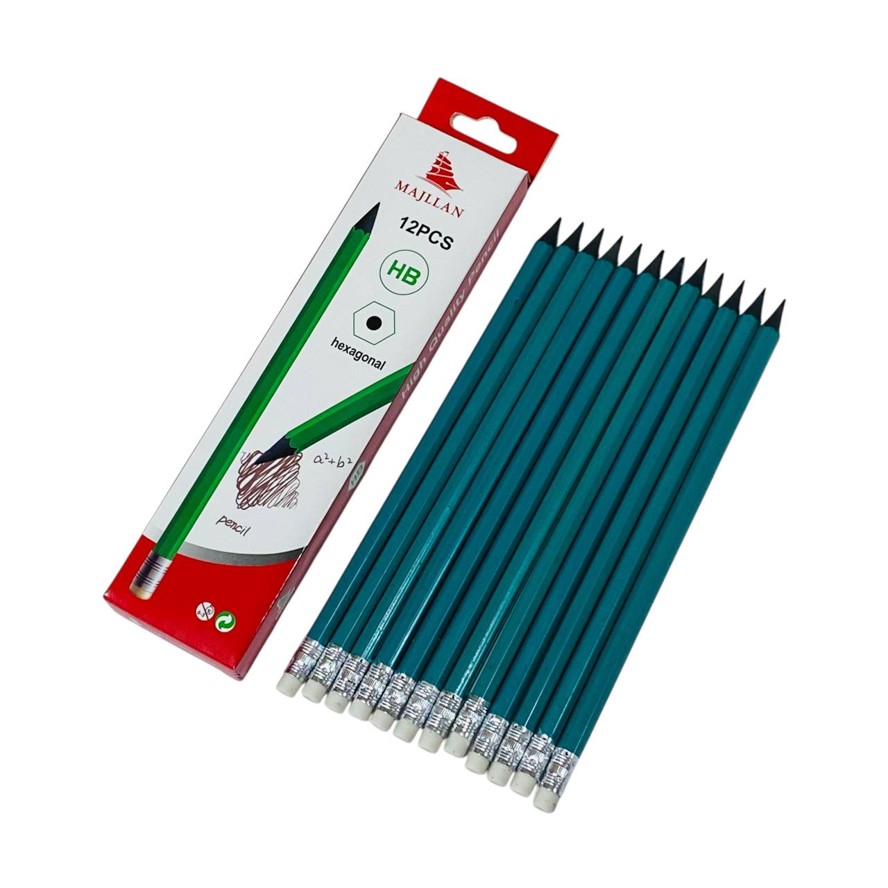دستة اقلام رصاص 12 قلم مع ممحاة HB – ماجلان لون خضر