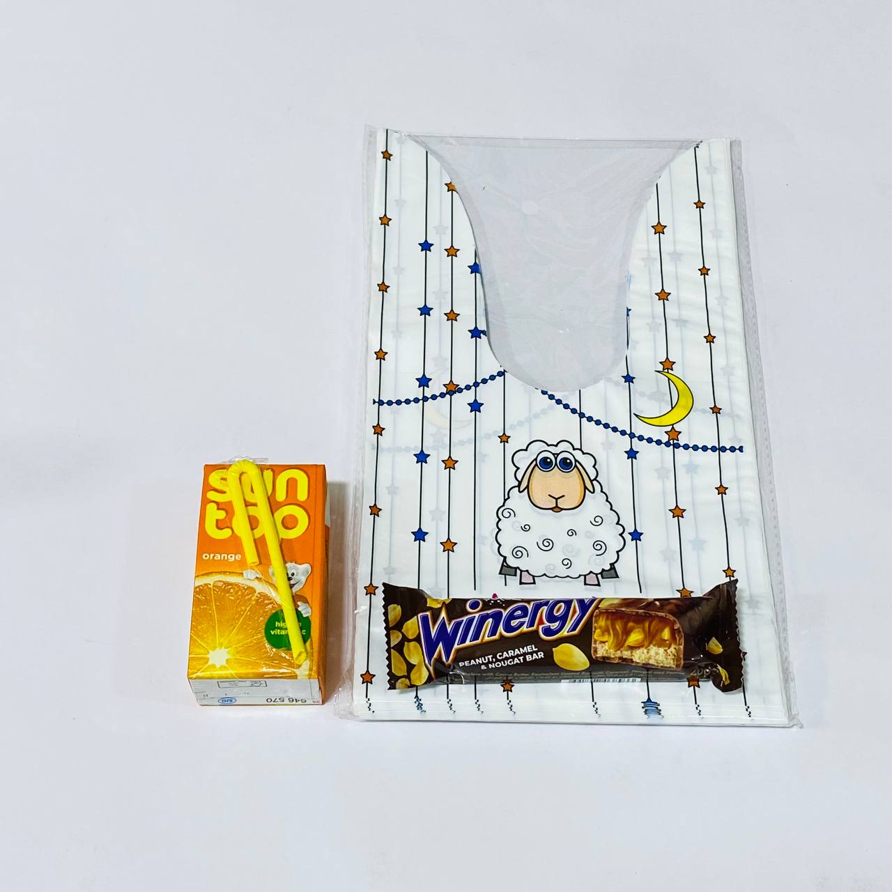 دستة اكياس توزيعات عيد الاضحى 50 كيس، رسومات نعجه شكل ارنوب ربطة