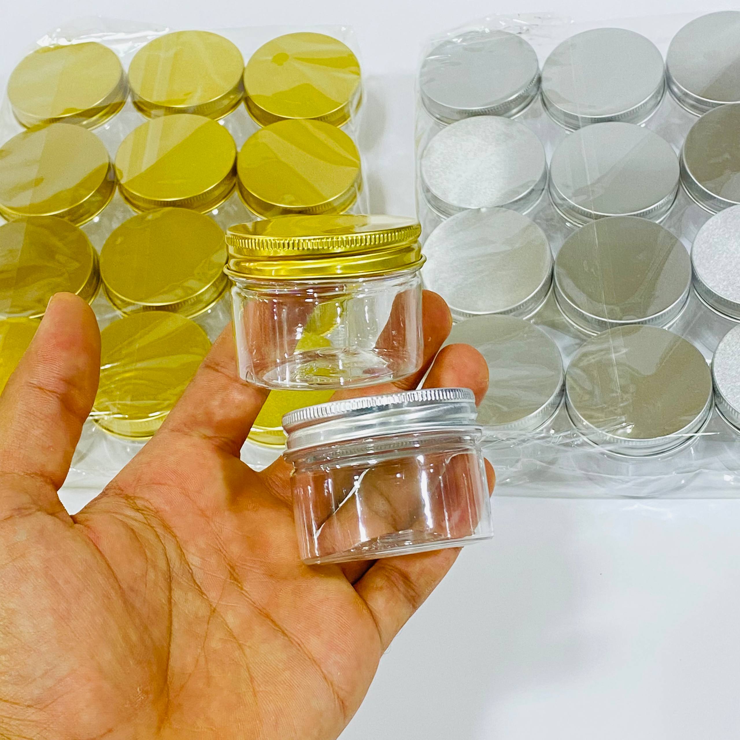 دستة علب 12 علبة 50 مل لون فضي / ذهبي متعددة الاستعمال مع اسفنج لحفظ المنتج عن الهواء اطول فترة