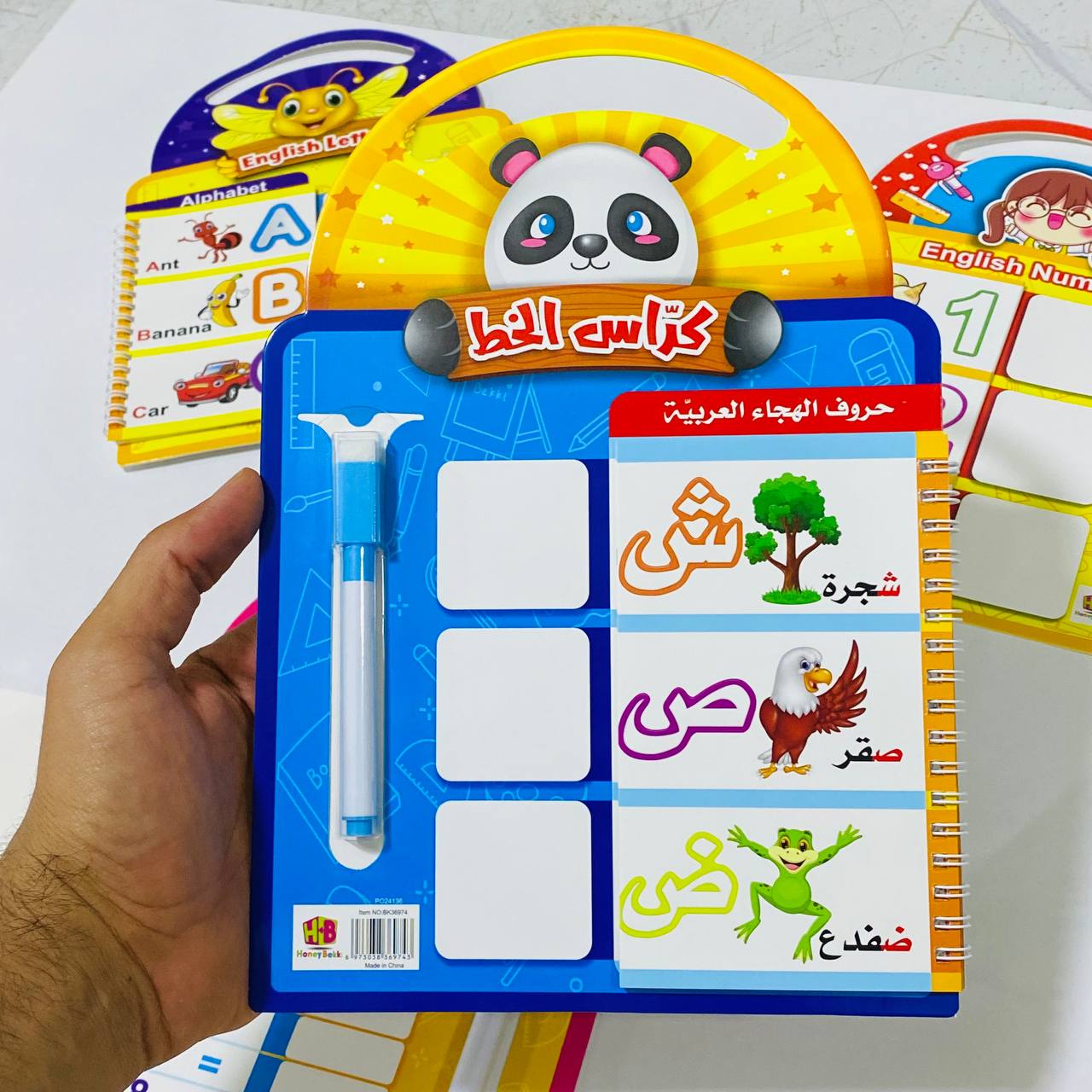 سبورة تعليمية مع خطاط ، اكتب وامسح ، تعليم الحروف العربية / الانجليزية / جدول ضرب / الارقام
