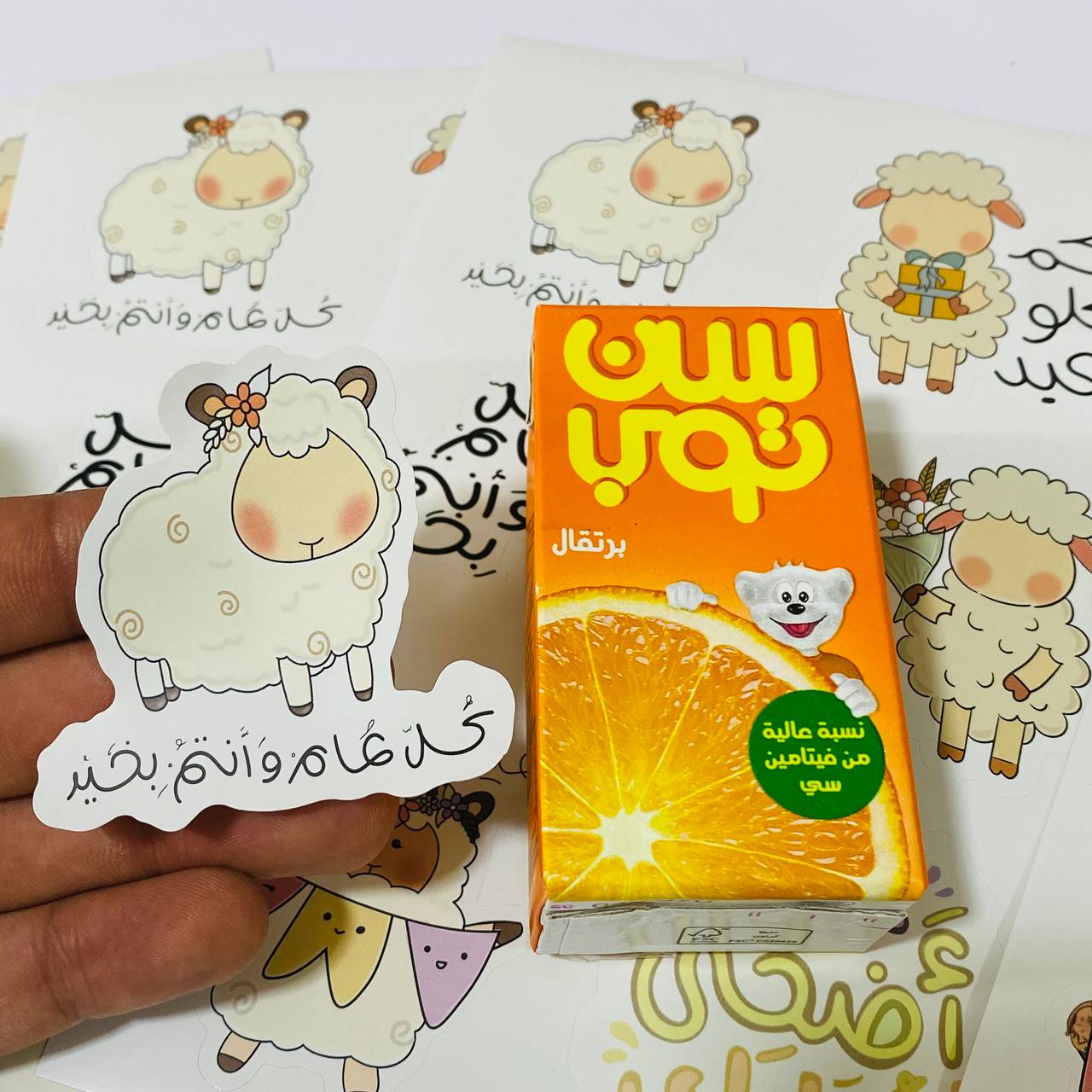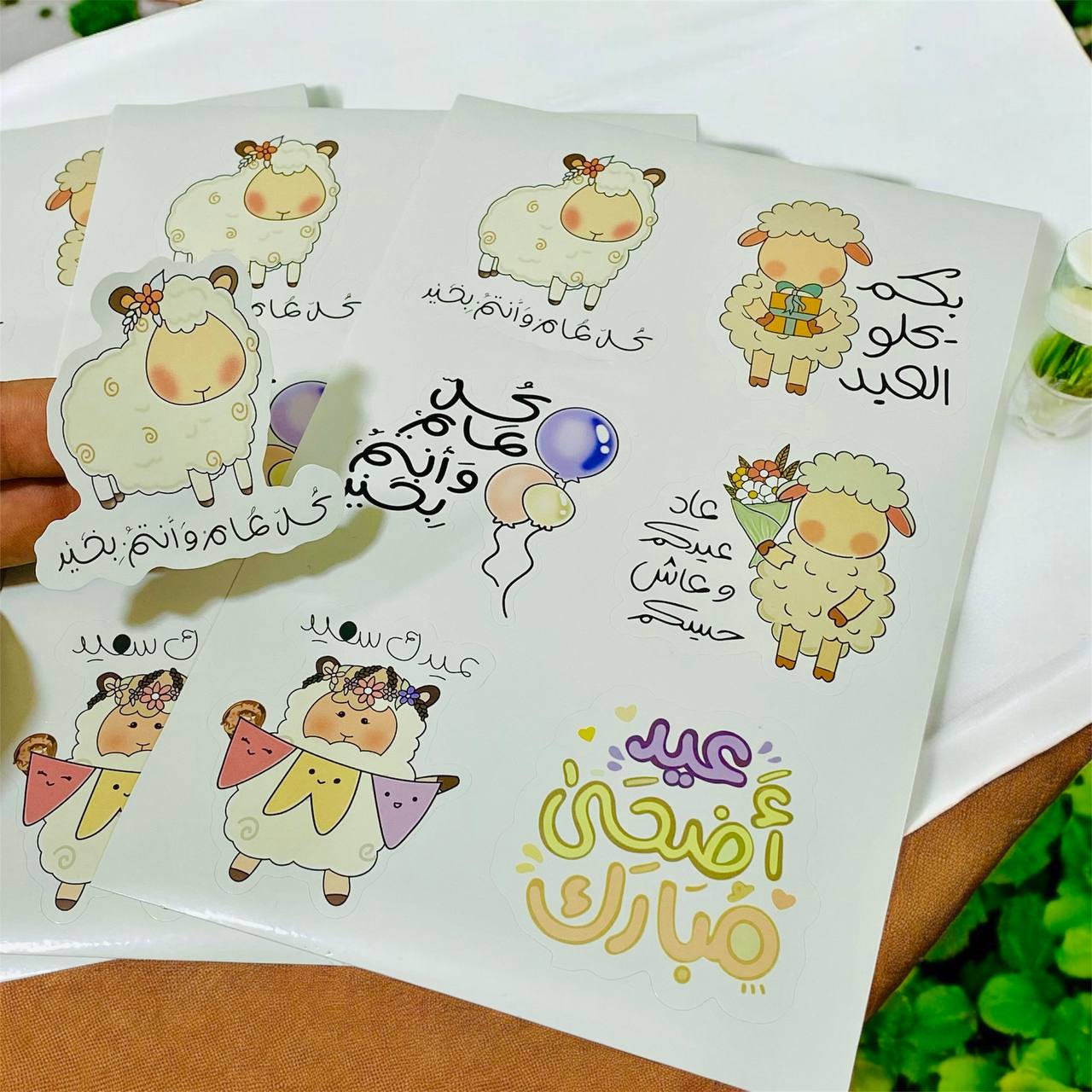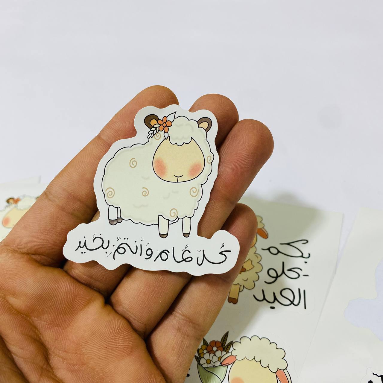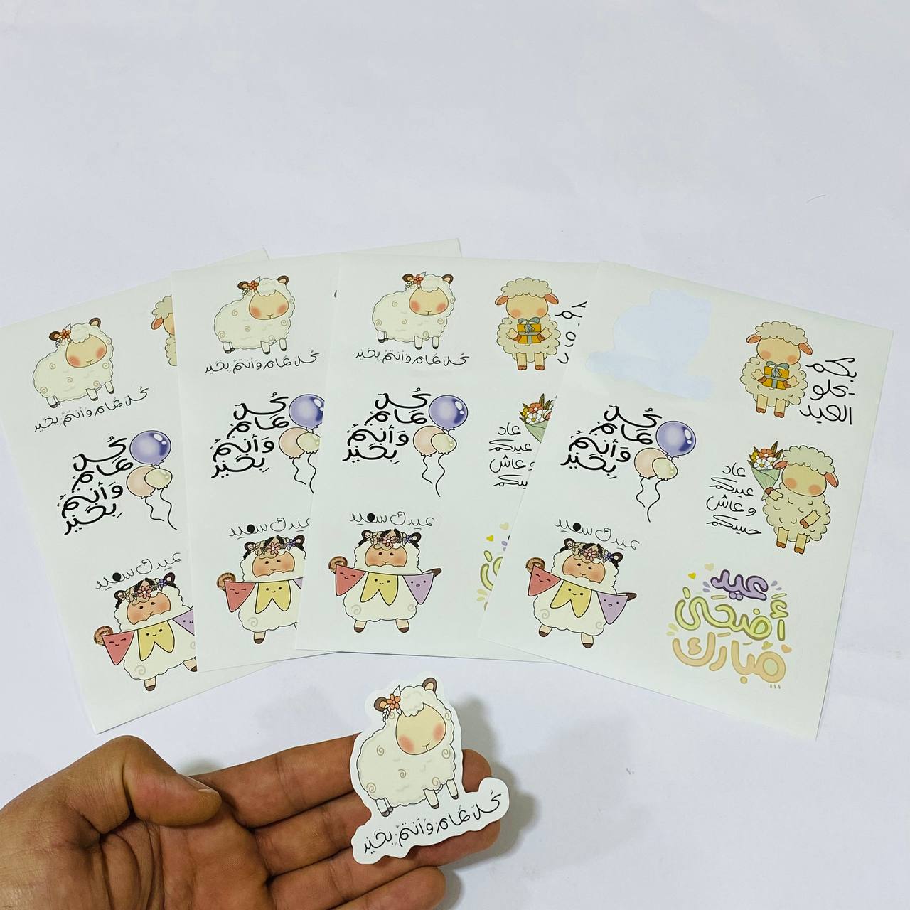 ستيكرات عيد الاضحى 24 ملصق لاصق تصاميم نعجه ، مناسب للعيديات
