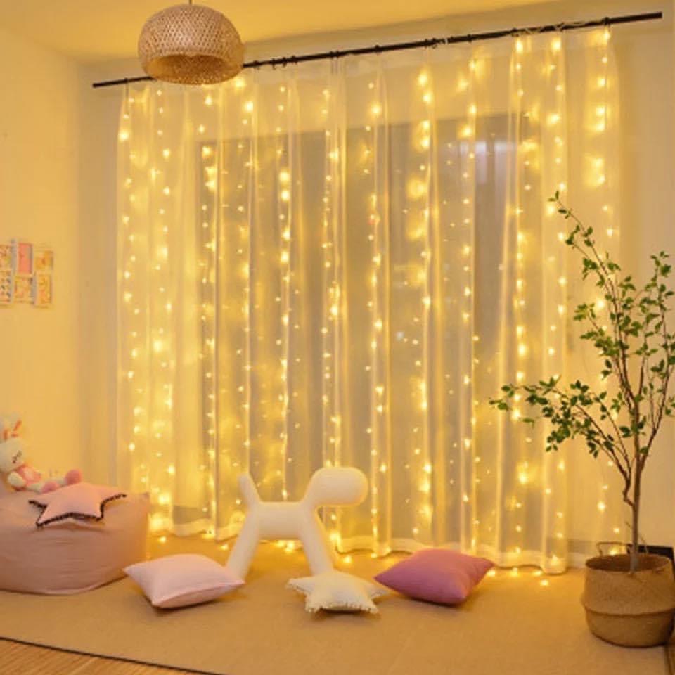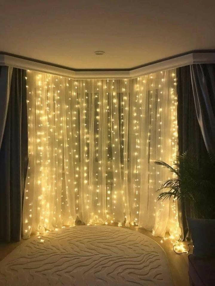 • 【مصابيح زينة متعددة الاستخدامات】يمكنك تعليق أضواء الستارة على الستائر والجدران والنوافذ والأبواب وتزيين ترند الخيمة وما إلى ذلك. أضواء خيالية لطيفة لخلق جو جميل لغرفتك، ديكور جميل للحفلات الداخلية والخارجية  والزفاف.