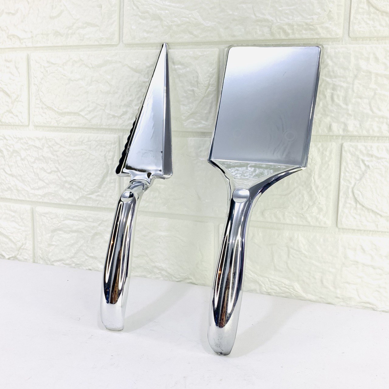 سكين + ملعقة قص كيكات لون فضي