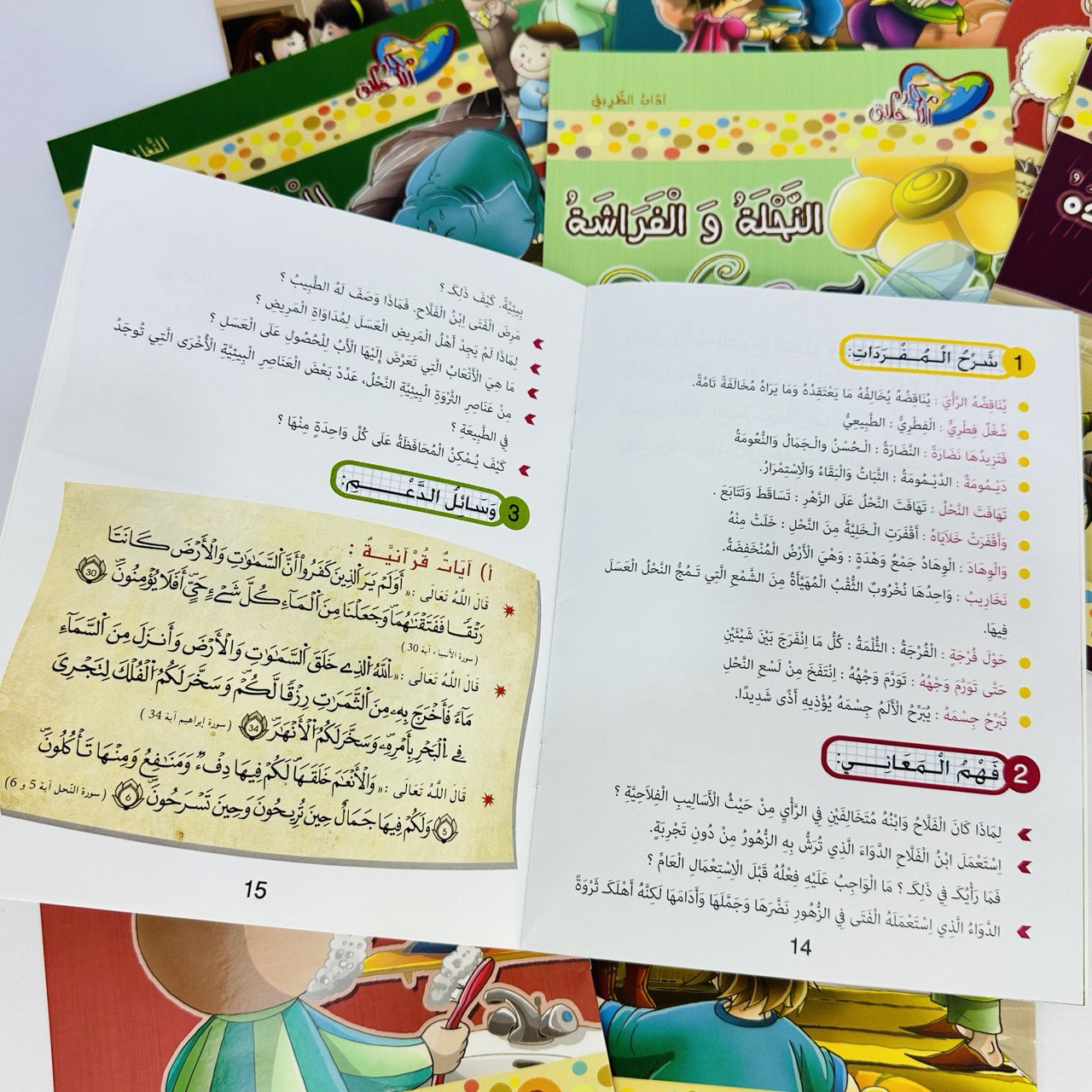 - في كل قصة عبر لا تنتهي ومناقشة وأسئلة وشرح للمفردات والمعاني