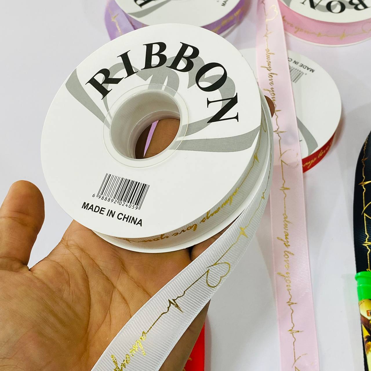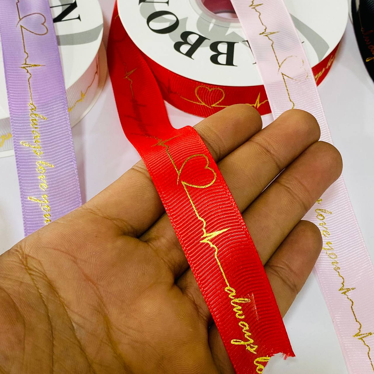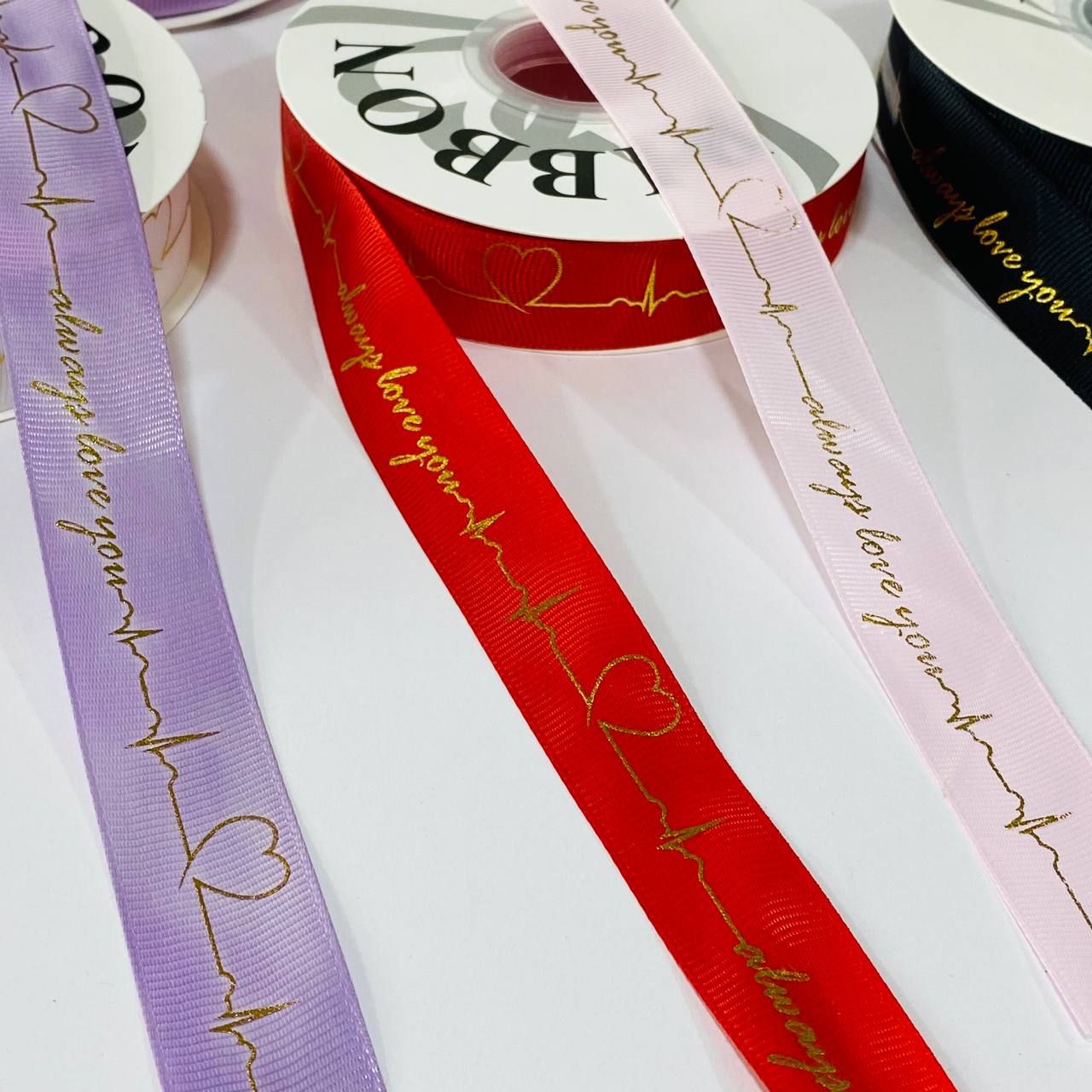 شريط تغليف وربط الهدايا والباقات دقات القلب بالذهبي وعبارة always love you نسترو ساتان