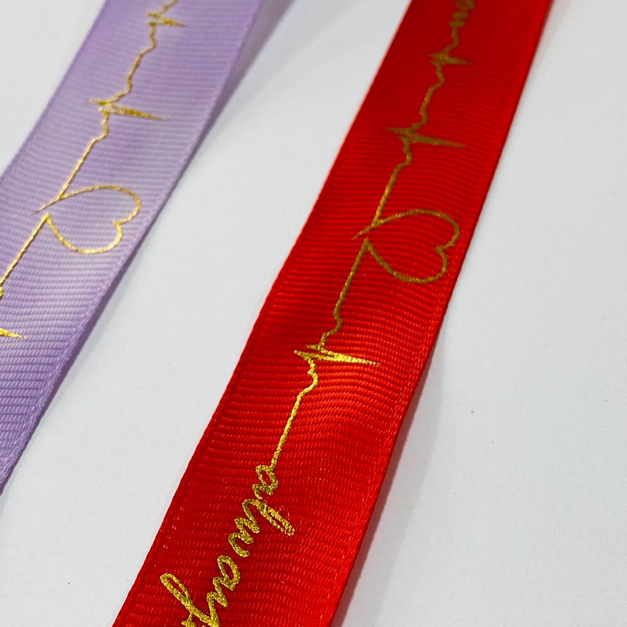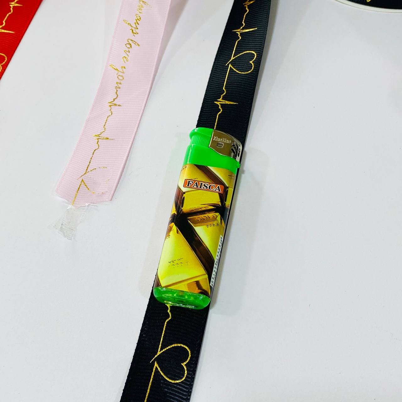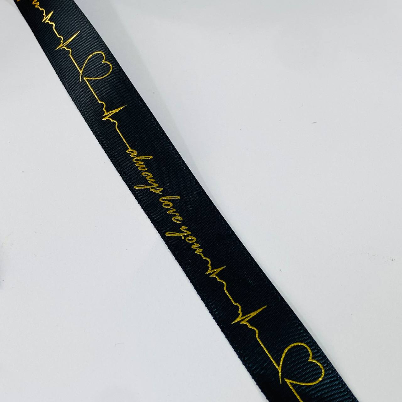 شريط تغليف وربط الهدايا والباقات دقات القلب بالذهبي وعبارة always love you نسترو ساتان