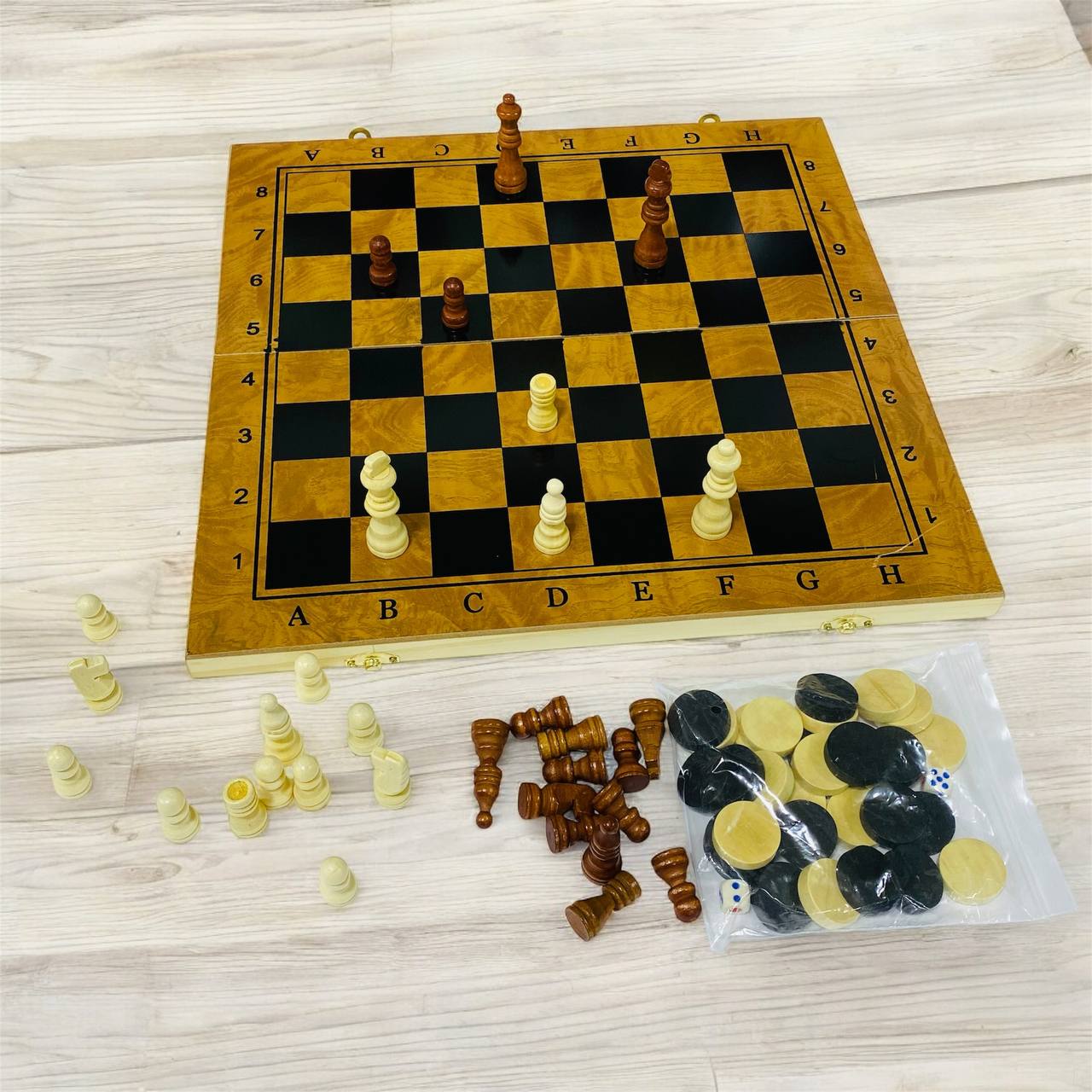 شطرنج خشبي 3 العاب في 1 مع داما و لعبة طاولة للجمعات العائلية