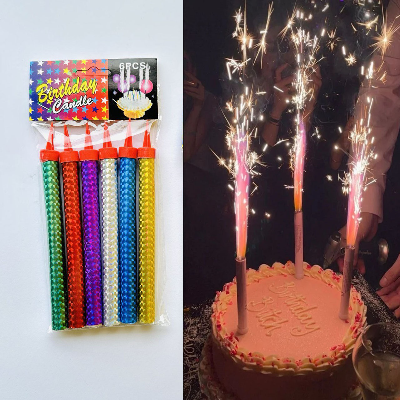 يتم إضاءة الشمعة لفترة زمنية معتدلة ولن تحترق بسرعة كبيرة. تأتي كل شمعة مع مسمار يمكن تثبيته بسهولة على الكعكة ، مما يضمن حرقًا ثابتًا للشمعة والشمعة من الميل أو الخروج.