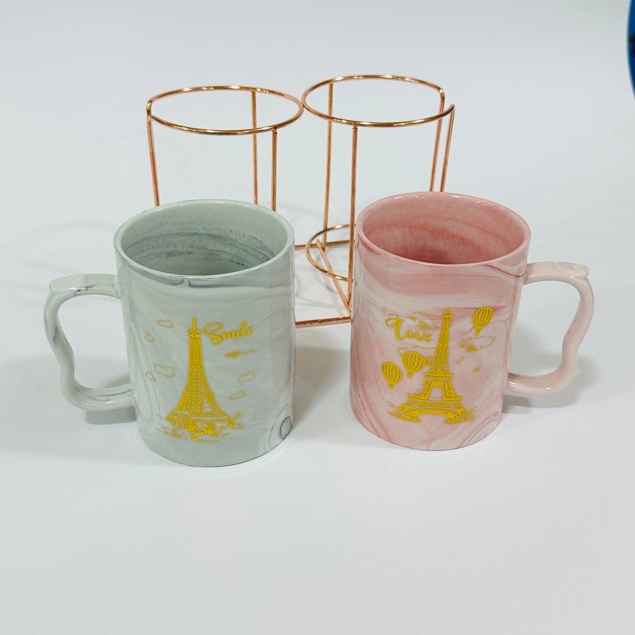 - 2 اكواب من السيراميك بشكل رخامي سعة 300 مل