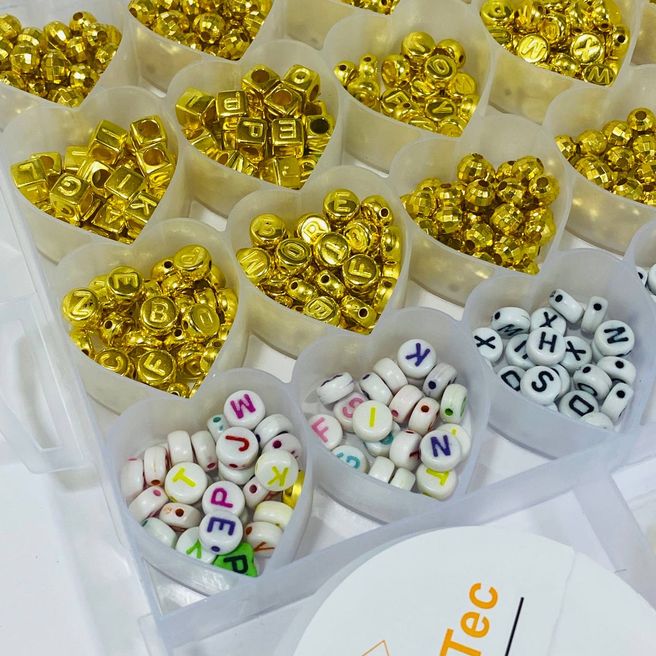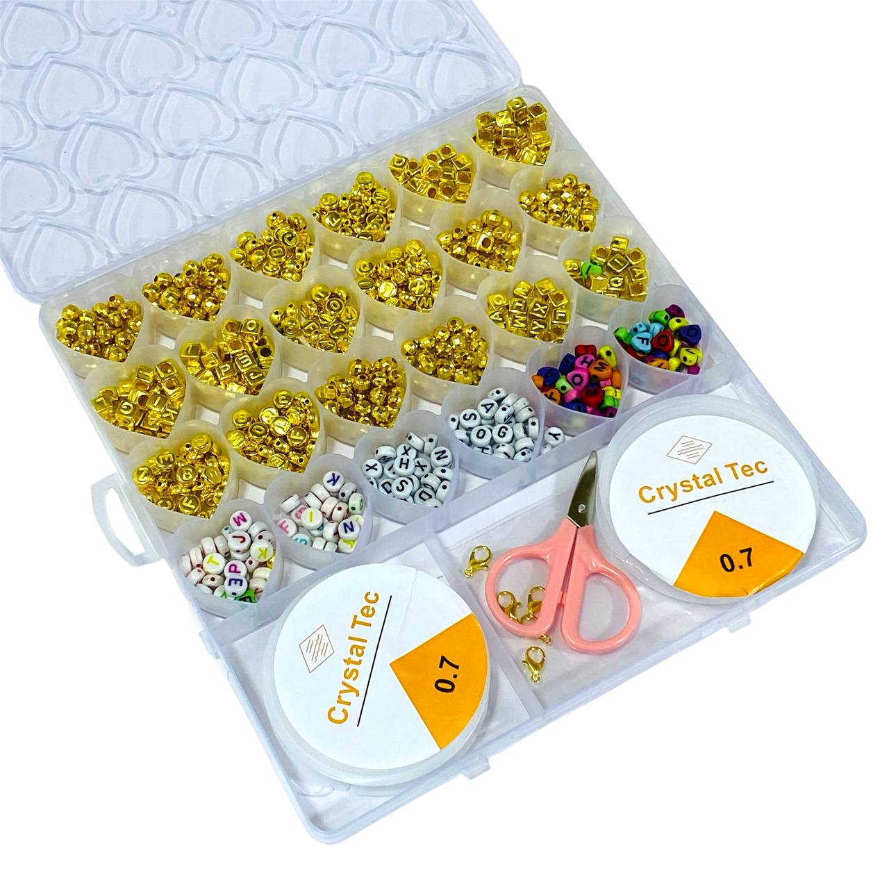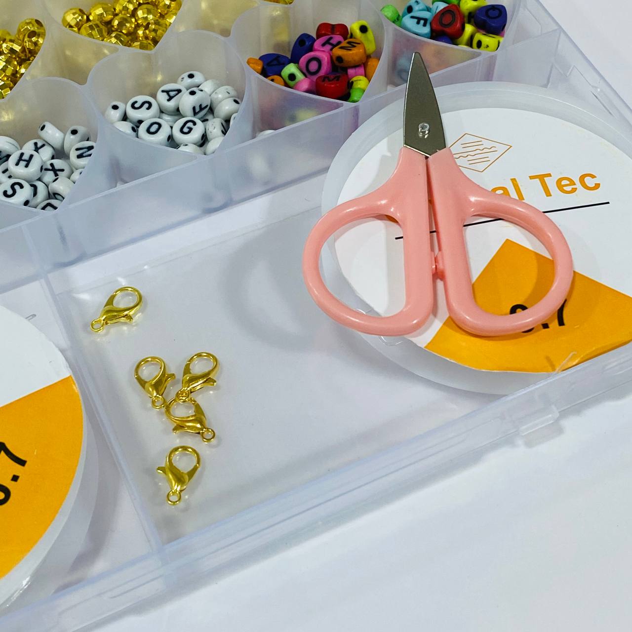 طقم صنع اكسسورات وأساور بناتية بالحروف ذهبية وبيضاء مع مقص و 2 بكرات سلك