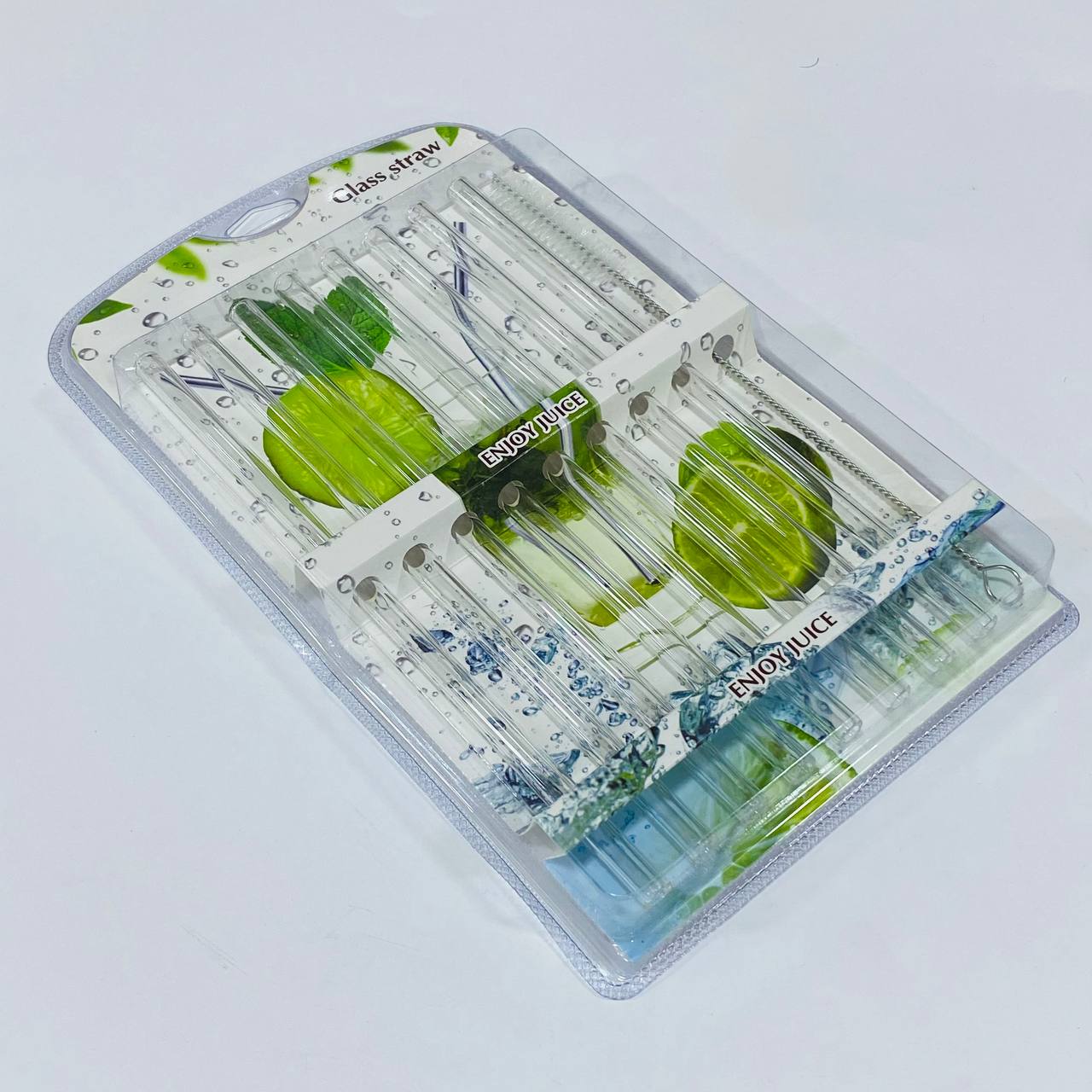 طقم طوبوات زجاجية مع فرشاة تنظيف 8 مصاصات