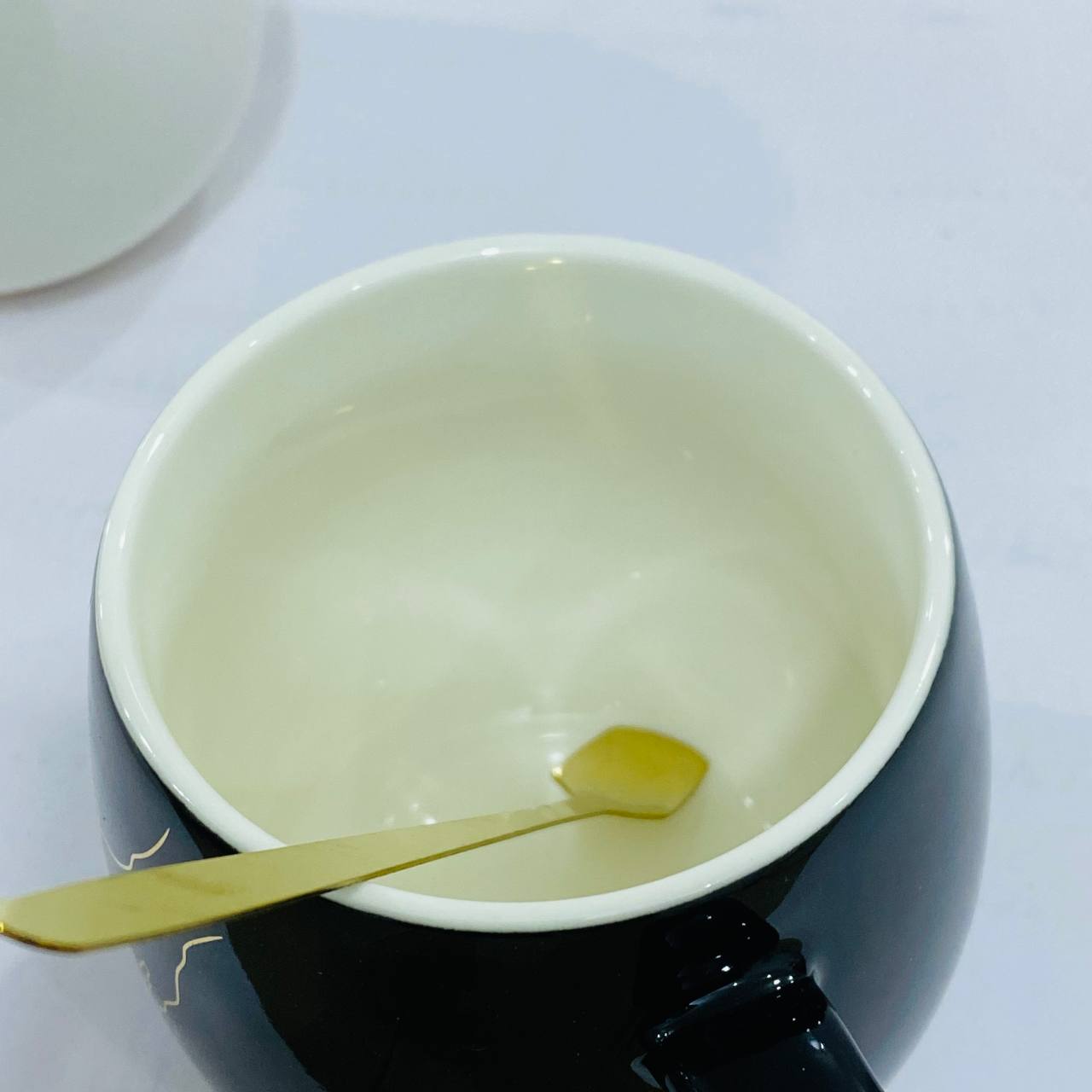 مراجعة واحدة لـ طقم 2 مق كابتشينو فخم برسمه الأصابع اللامعه مع عبارة love هدية زوجين داخل علبه , مناسبة لافطار صباحي وديكور منزل