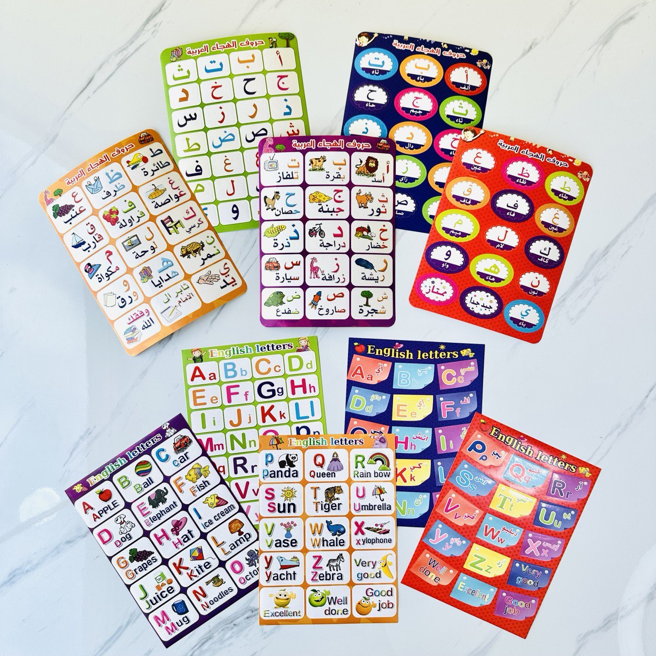 دستة طوابع حروف عربية – حروف انجليزية ملصقات كراسة لاصقة 5 ورقات