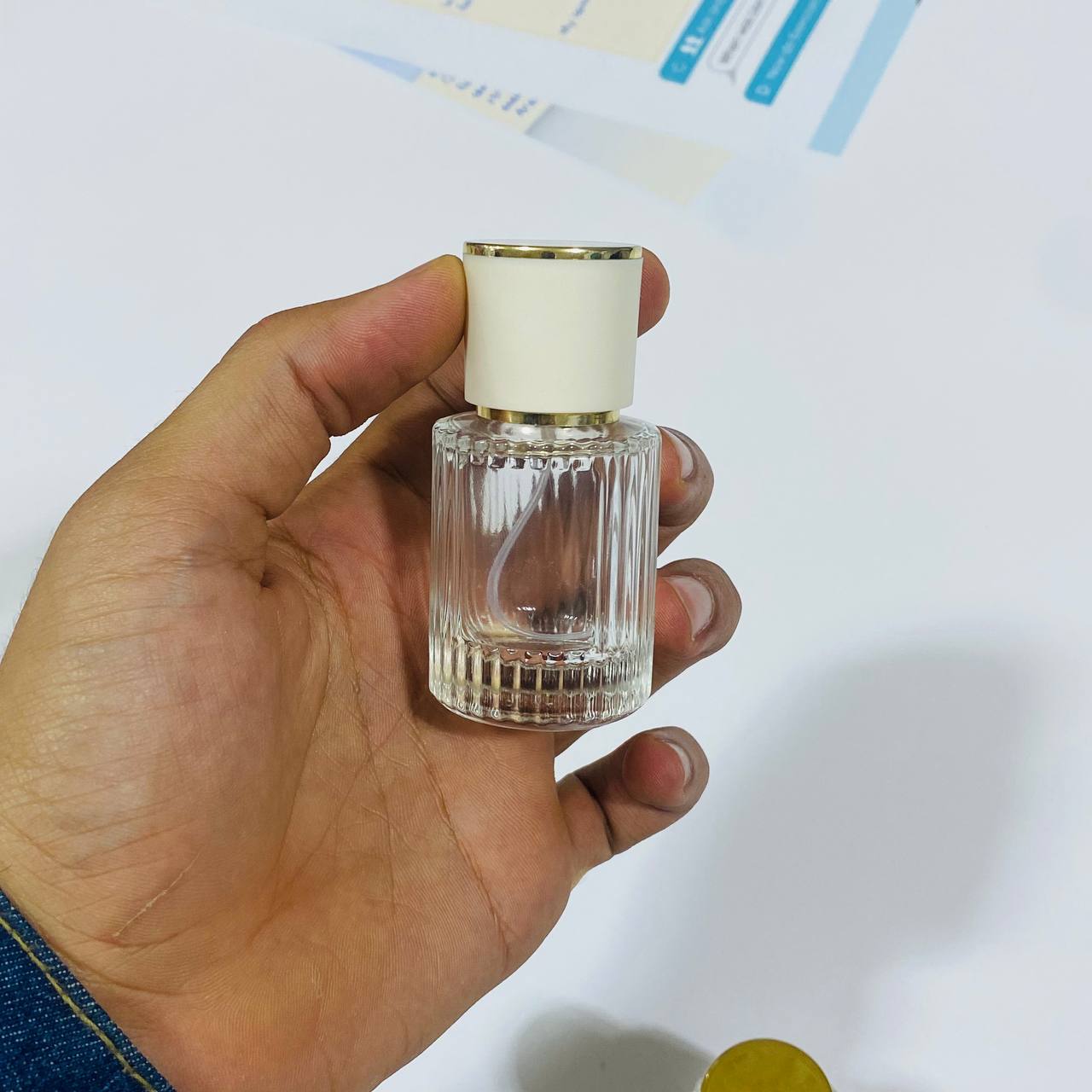 عبوة زجاج عطر فارغة نسائية فاخرة مع مكان ملصق رأس ذهبي – 30 مل