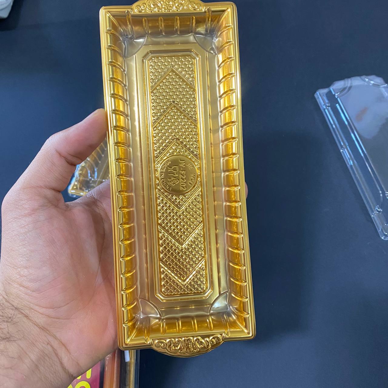 كن أول من يقيم “علبة فاخرة فارغه بلاستيك ذهبية متعددة الاستعمالات بغطاء شفاف للاستعمال الغذائي والكيكات”