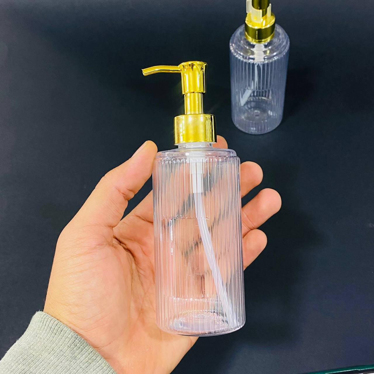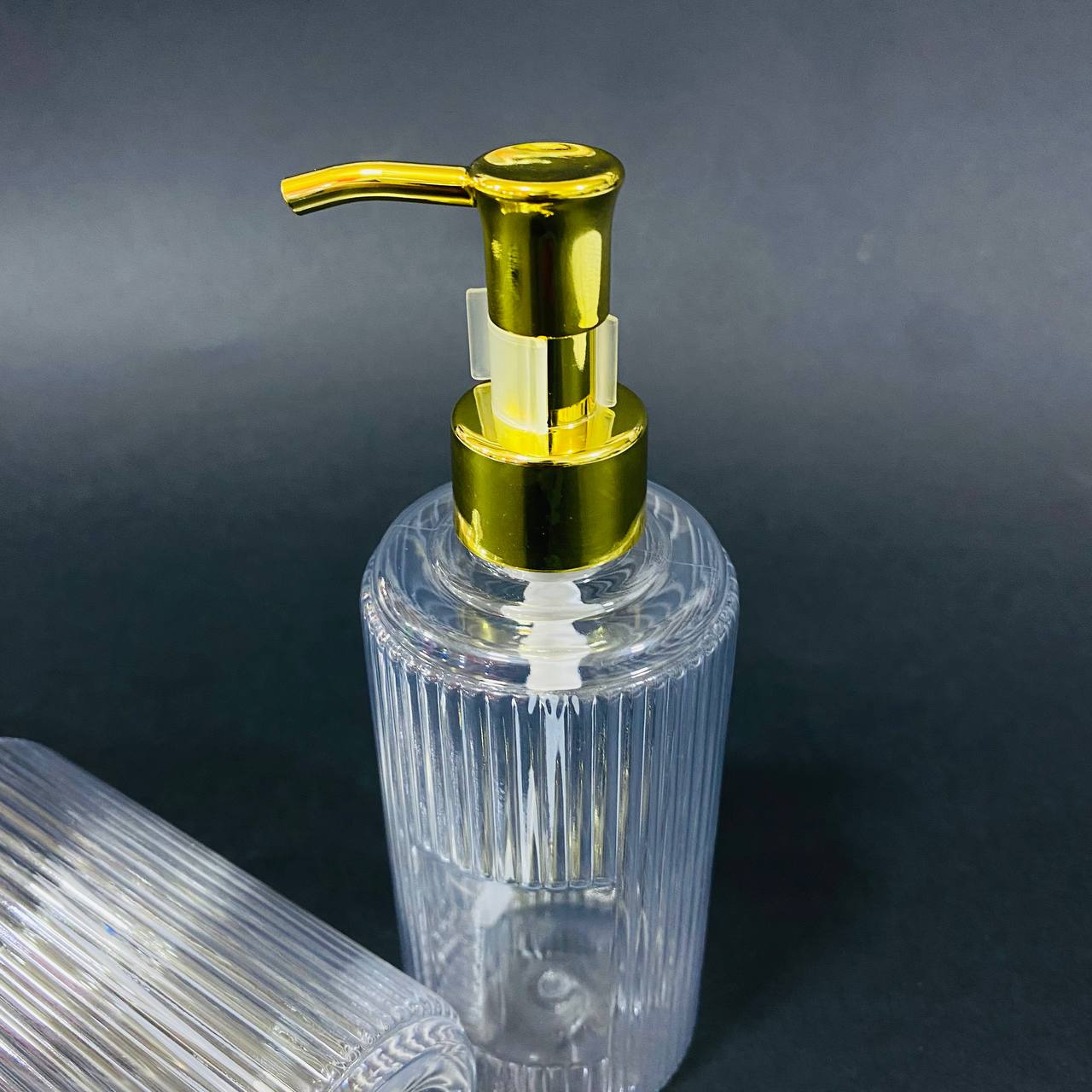 علبة فارغة لوشن + صابون بلاستيك رأس ذهبي عبوة 250 مل مع مكان طباعة ستيكر الشعار