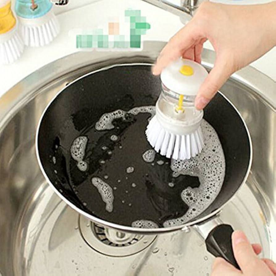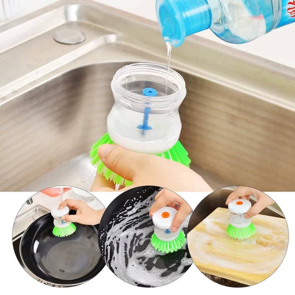 • فرشاة التنظيف ذاتية التوزيع مع خزان الصابون سهلة الاستخدام للغاية. ما عليك سوى فتح الجزء العلوي وإضافة الصابون أو المنظف.