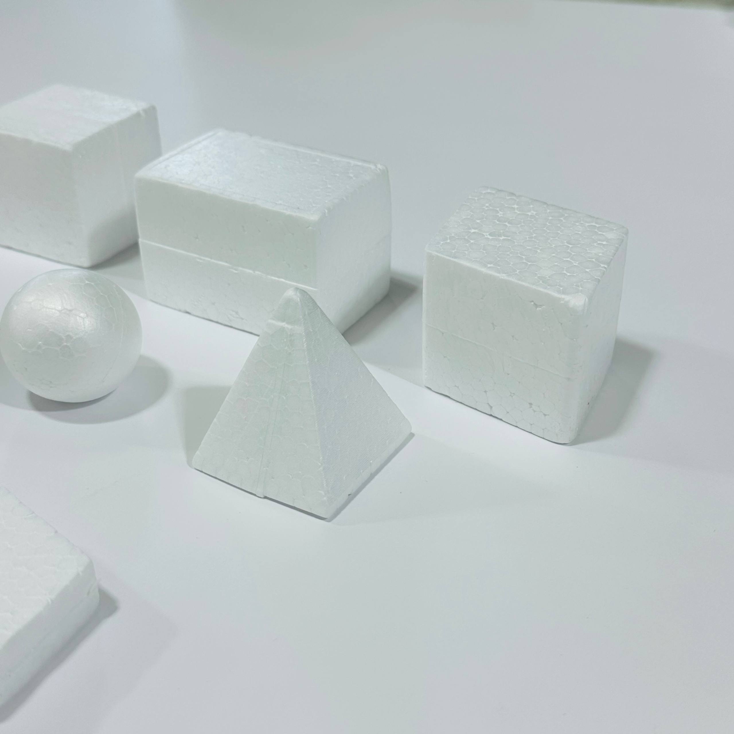 فوم أشكال هندسية مجسمات 7 أشكال , فلين خفيف ، هرم , كرة , اسطوانة , مكعب , متوازي الأضلاع , خماسي