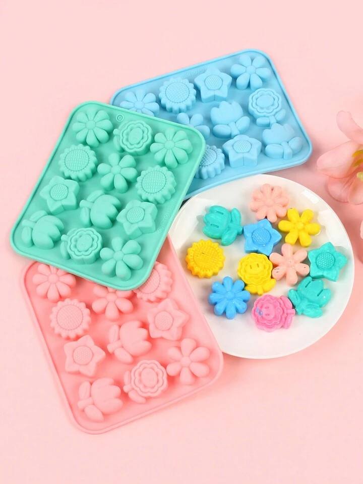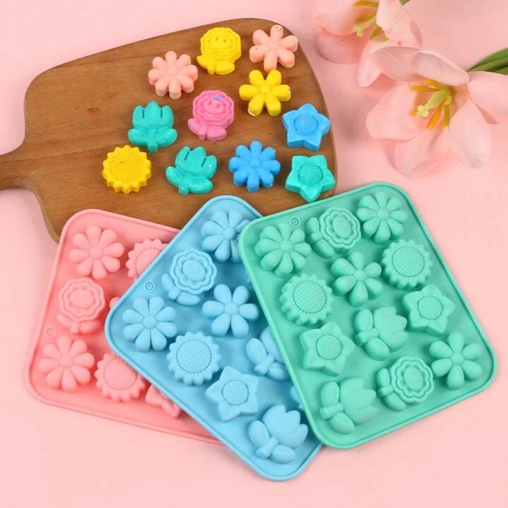 - قالب سيليكون بتصميم الزهرة، 12 حفرة، مناسب لصنع الشوكولاتة، الحلوى الجيلي، البوظة، البسكويت، قطع دهون، الترفل والكراميل الصلب، عمل الحلويات