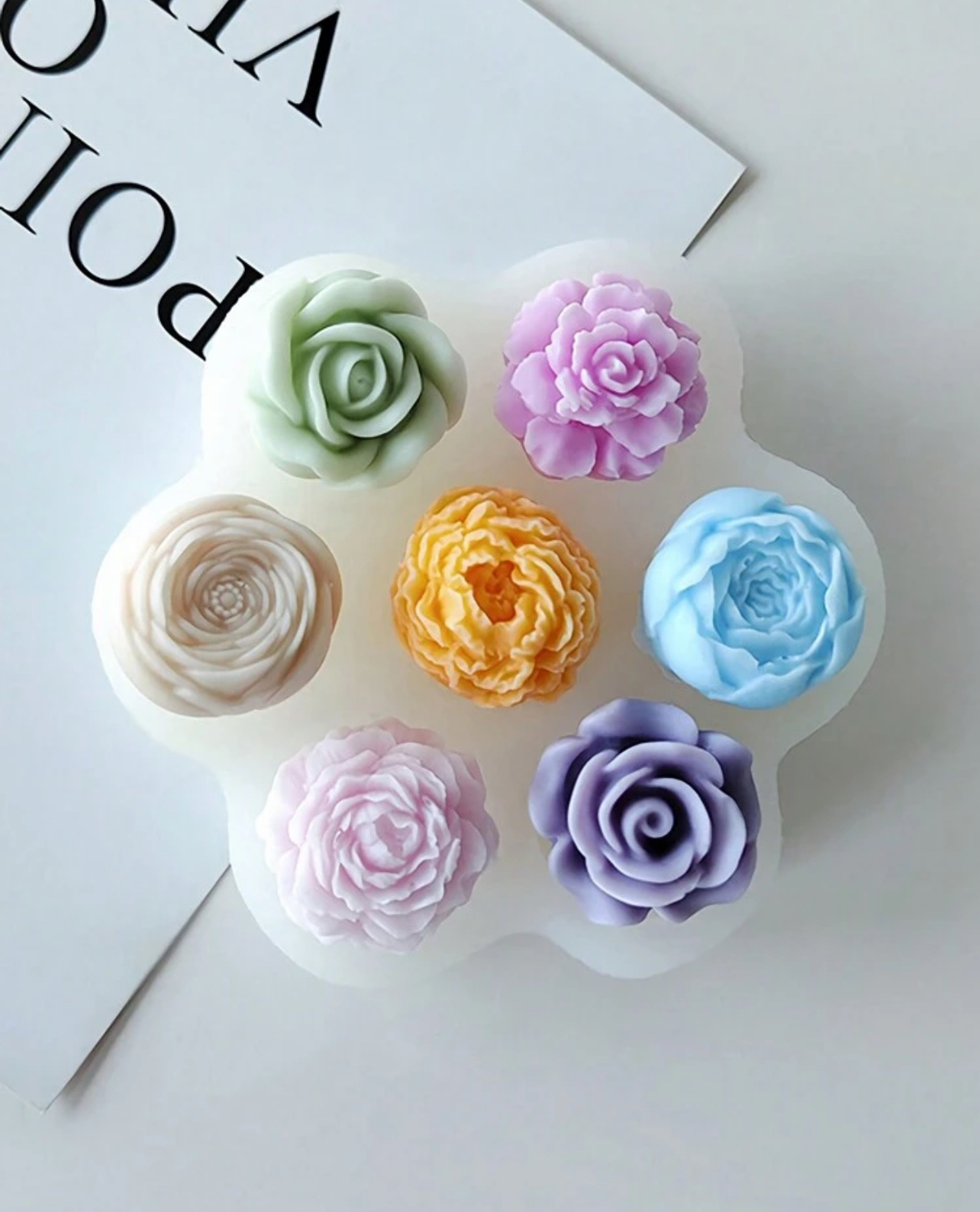 قالب سيلكون زهرة لصنع الشموع 7 وردات مختلفة WFHM77