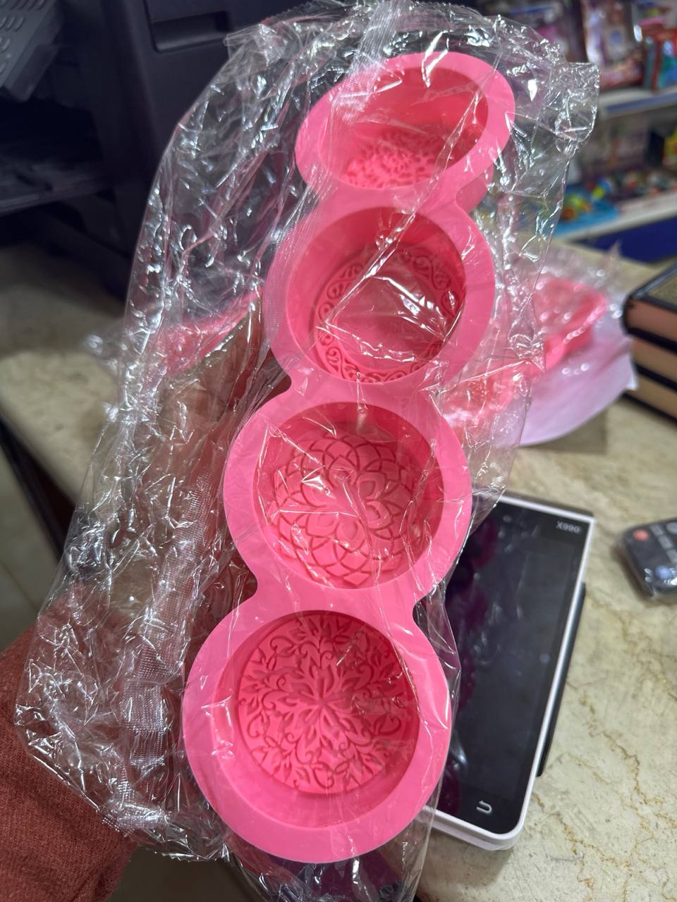 قالب سيلكون لصنع الصابون وديكور الشموع ثلاثي الابعاد 4 فتحات مزخرفة MA93