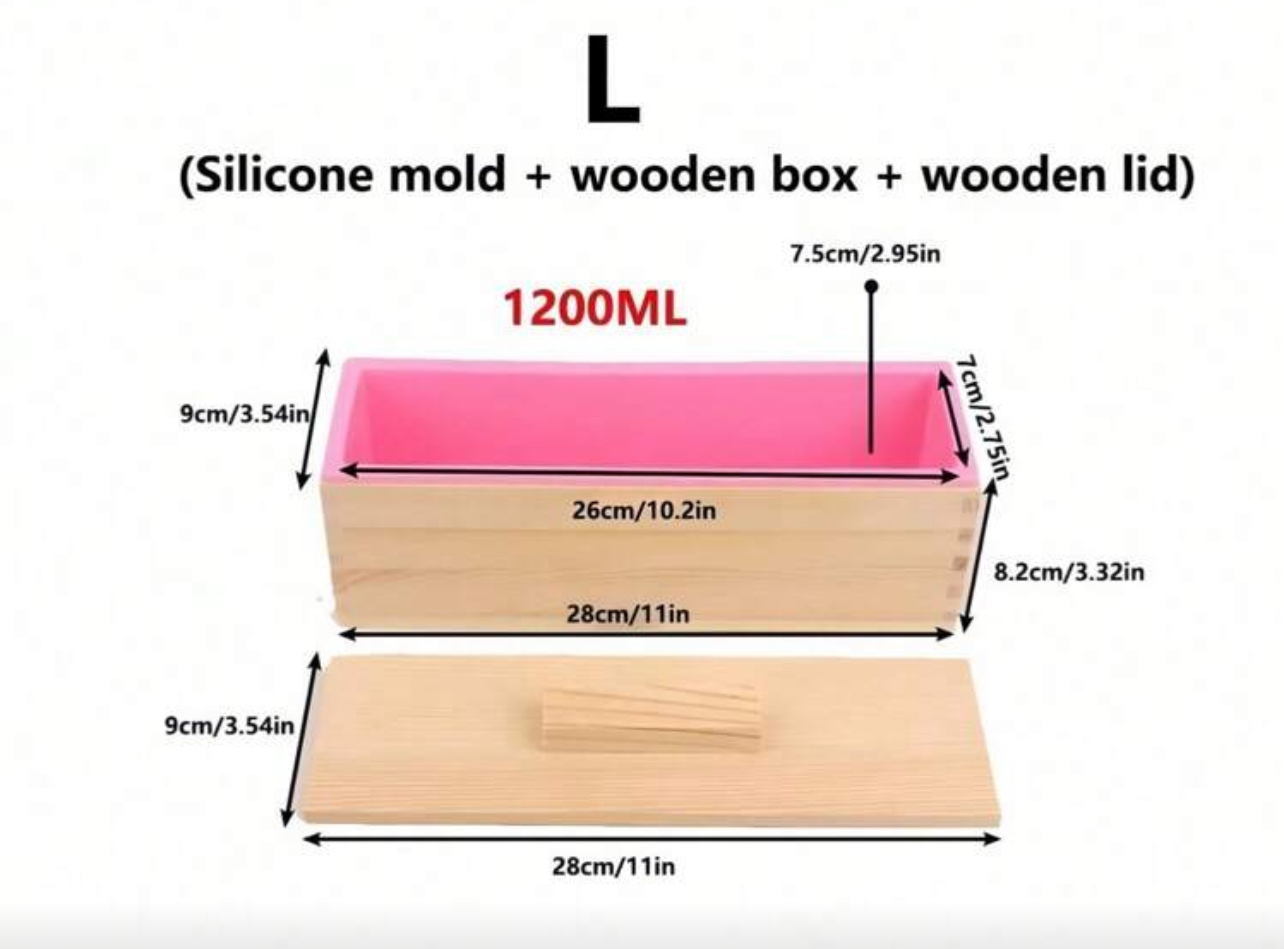 قالب سيلكون مستطيل مع بوكس خشب بالغطاء لصناعة ديكور الشمع والصابون WFHM77