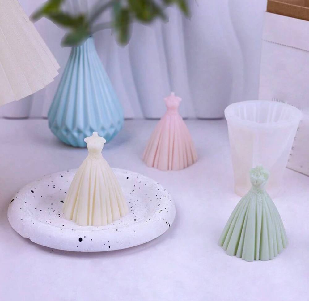 قالب سيليكون على شكل فستان زفاف لصب ديكور الشمع معطرة WFHM77