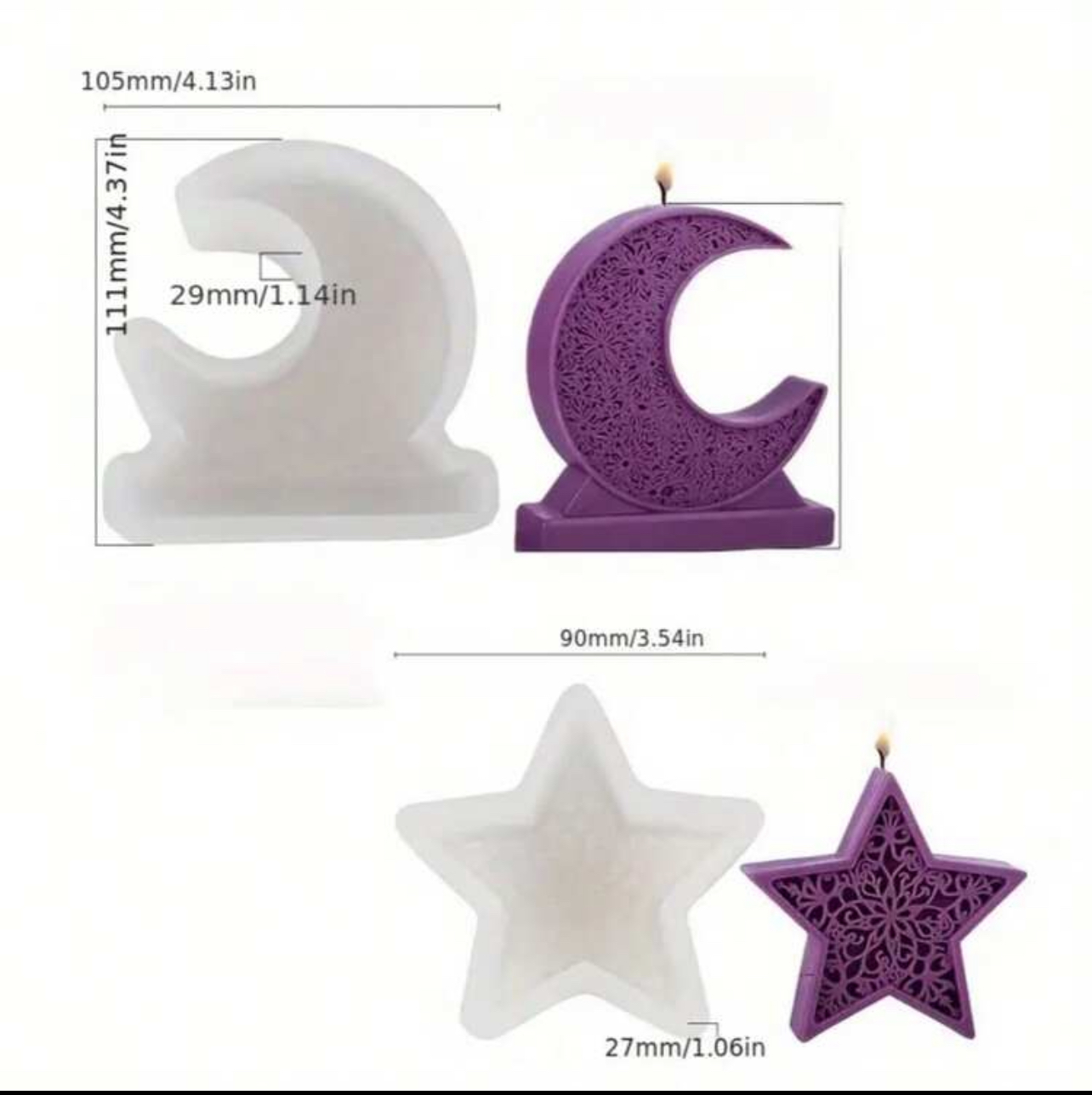 قطعتين قالب نجمة ⭐️ وهلال 🌙مناسب لصنع الشموع المعطرة وديكورات الجبس WFHM77