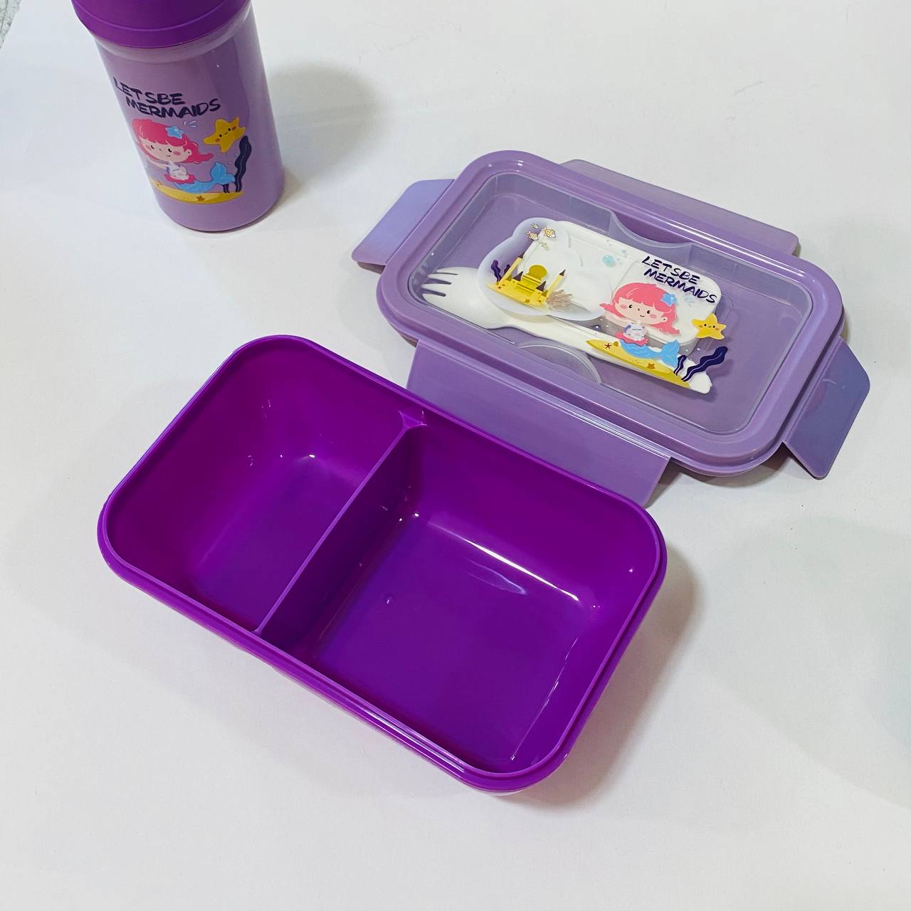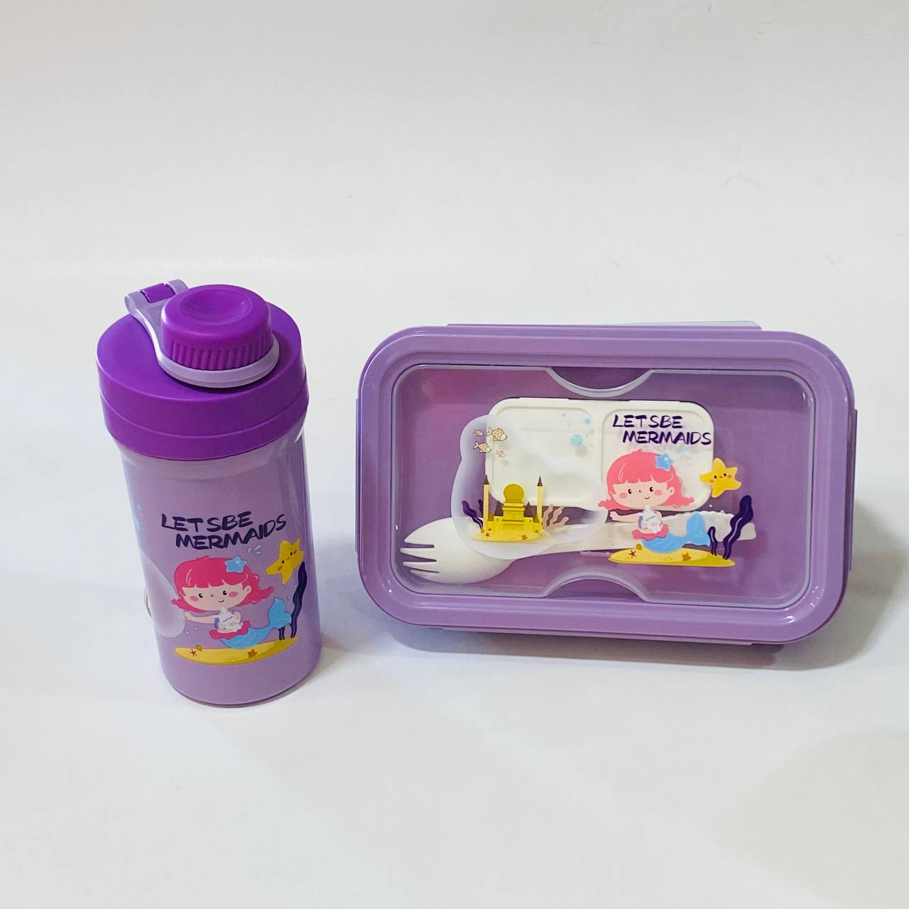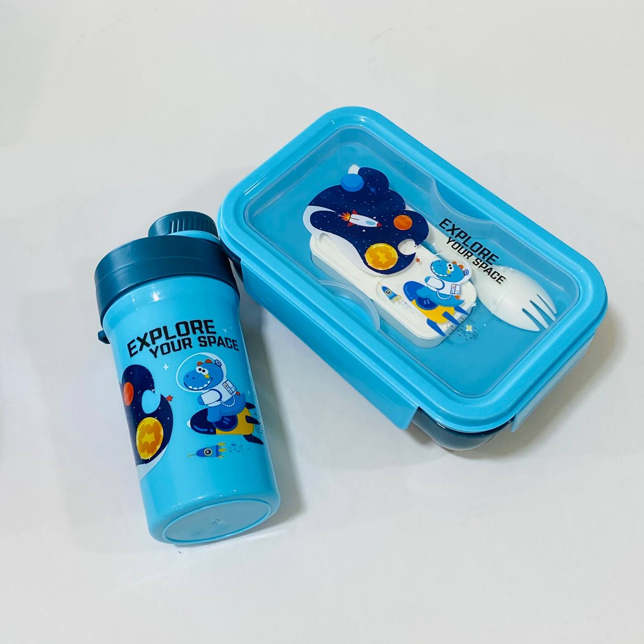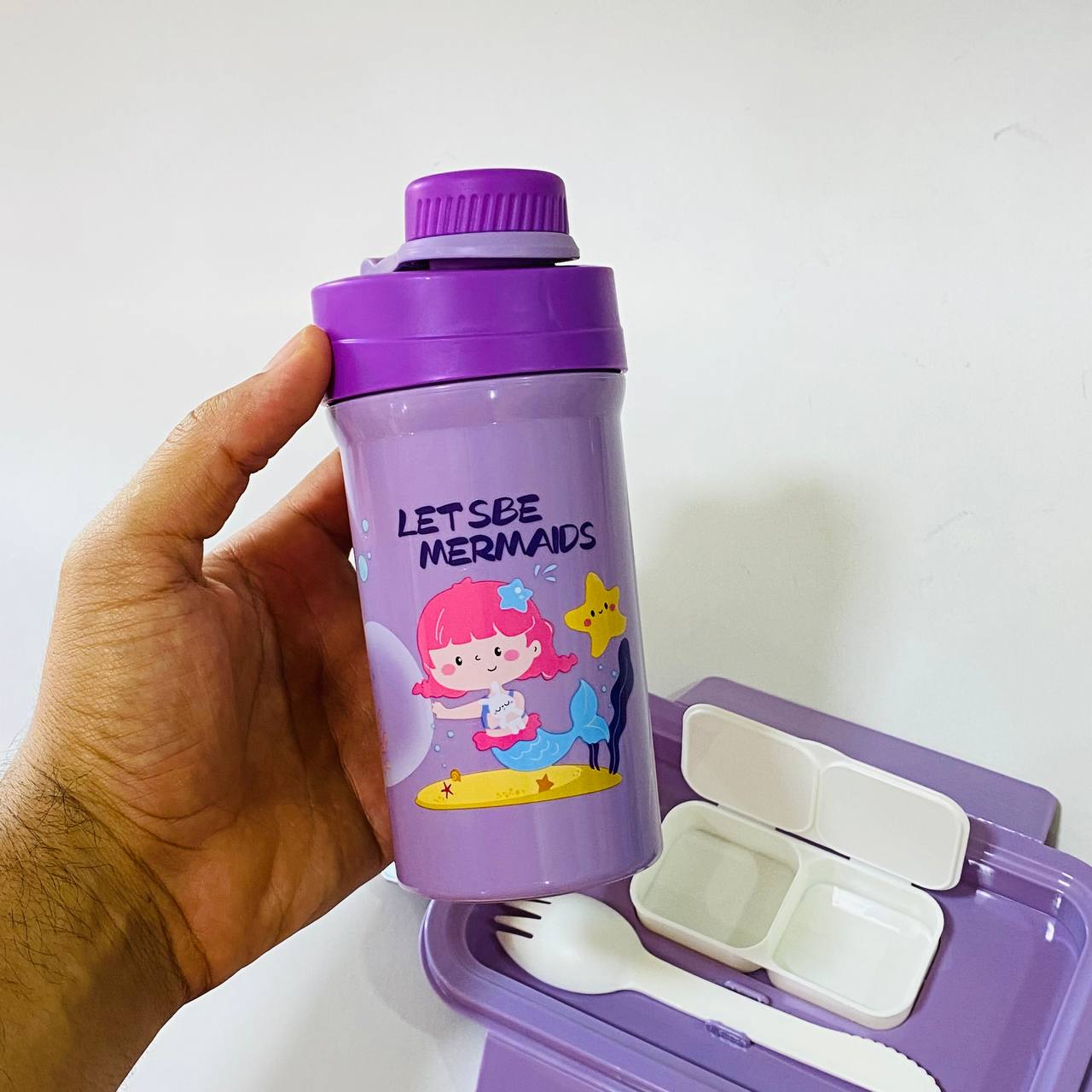 لانش بوكس مع ترمس للأطفال بلاستيك كيوت ، مناسبة للفطور ووجبات المدرسة والتنزه