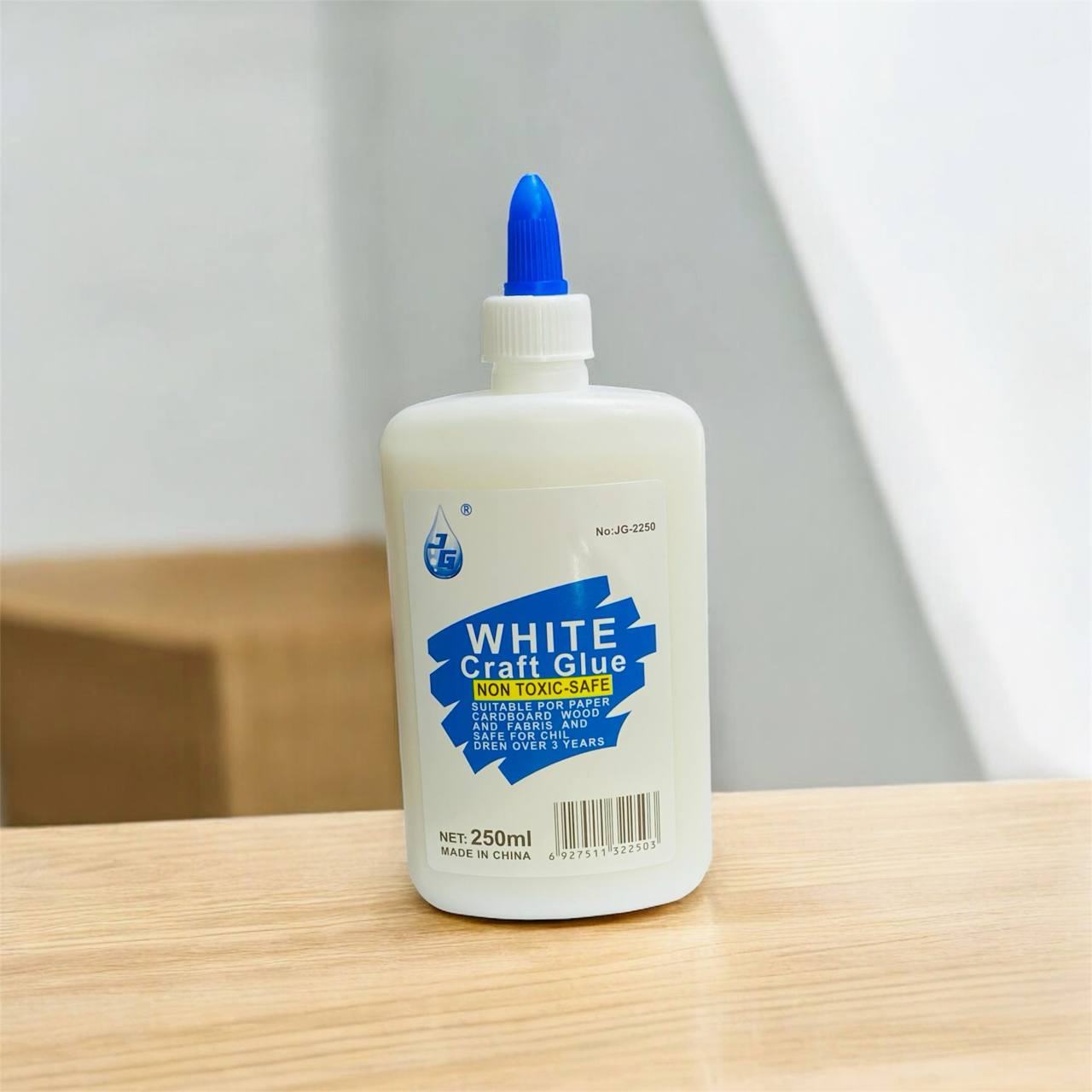 - عبوة غراء أبيض للحرف اليدوية (White Craft Glue) بسعة 250 مل. هذا النوع من الغراء آمن وغير سام (Non Toxic-Safe) ويمكن استخدامه للأطفال فوق 3 سنوات. إليك وصف استعمالاته وكيفية استخدامه:استعمالات الغراء الأبيض للحرف اليدوية: