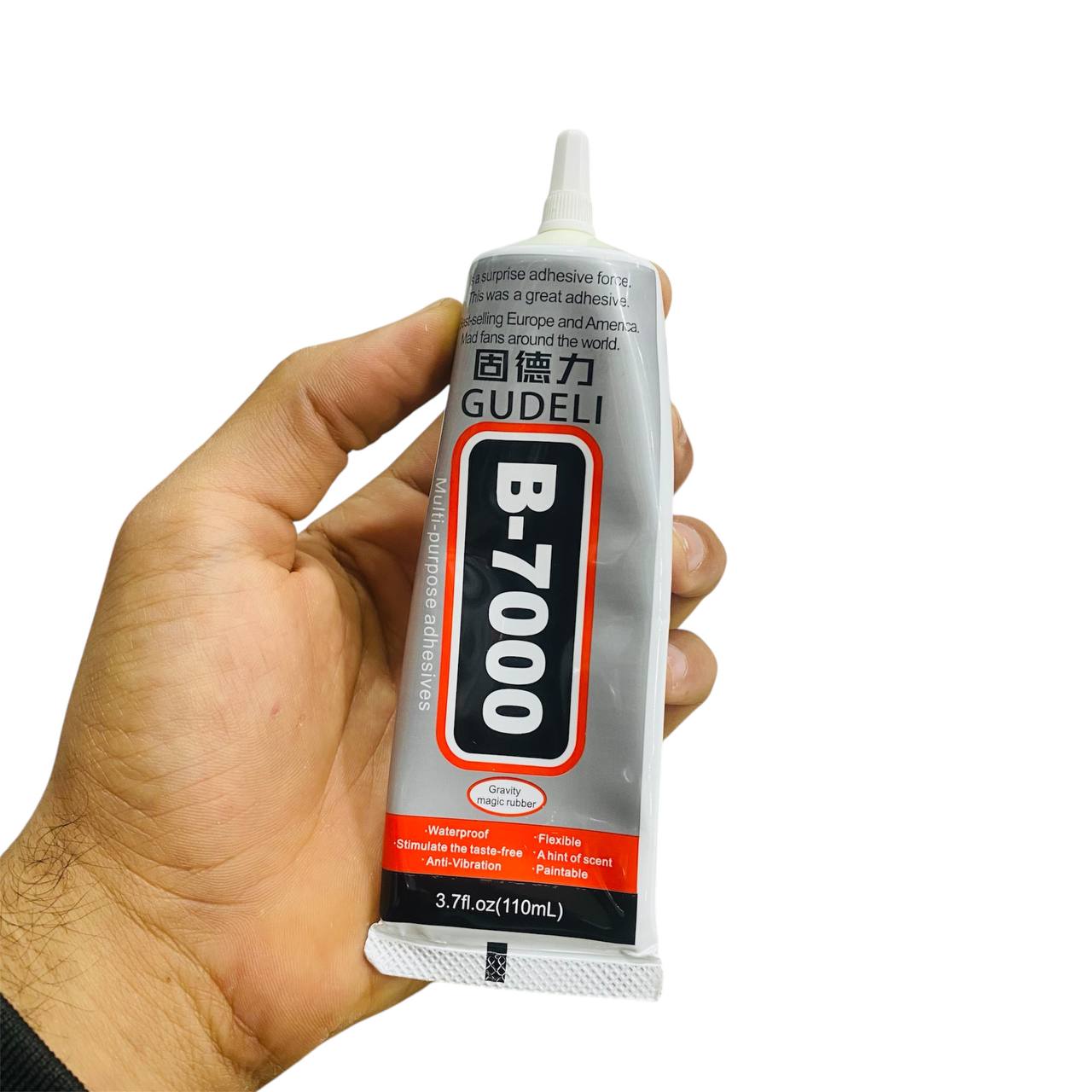 - هذا المنتج هو لاصق متعدد الأغراض من نوع B-7000 من علامة GUDELI. وهو مصمم للالتصاق بمواد مختلفة، ويتميز بالخصائص التالية:الاستعمالات: