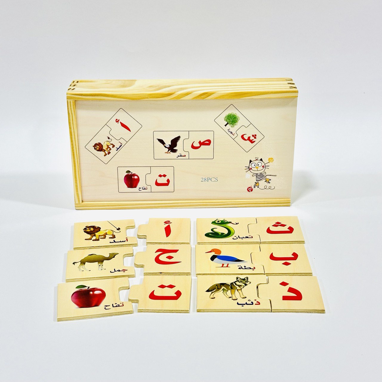 لعبة ذكاء تركيب بازل الحروف العربية الخشبية 28 حرف للأطفال