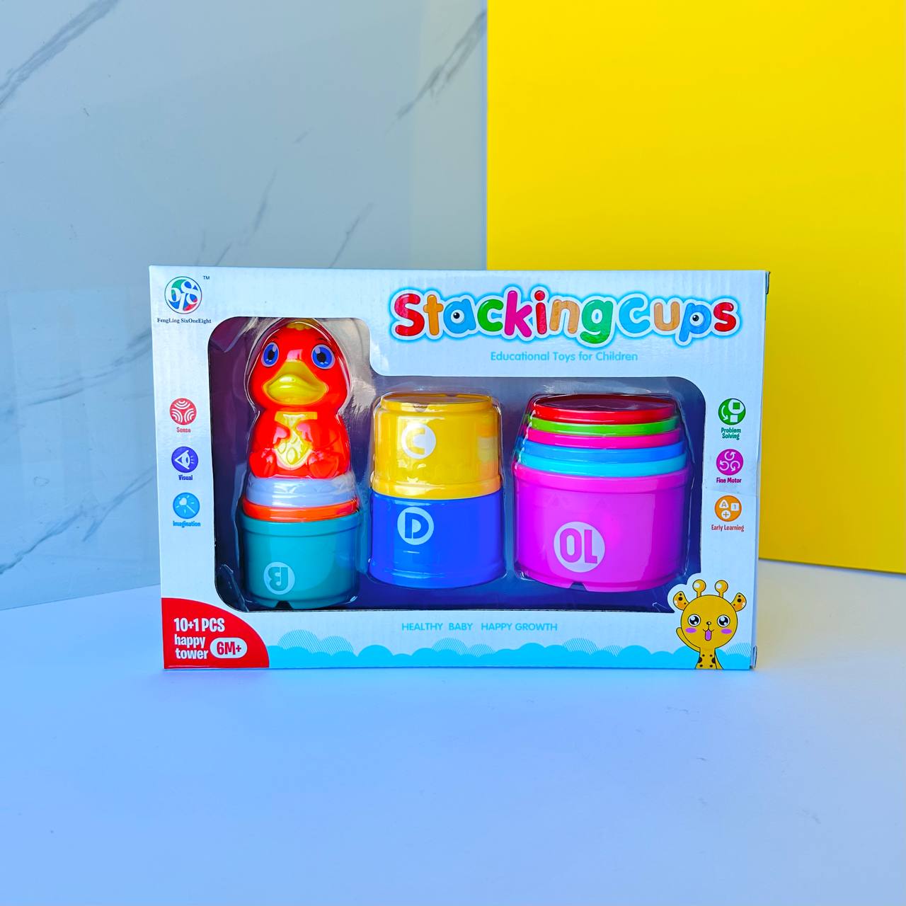 لعبة ذكاء تعليمية تركيب الأكواب للأطفال عمر 6 شهور