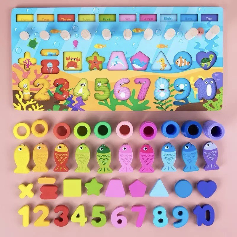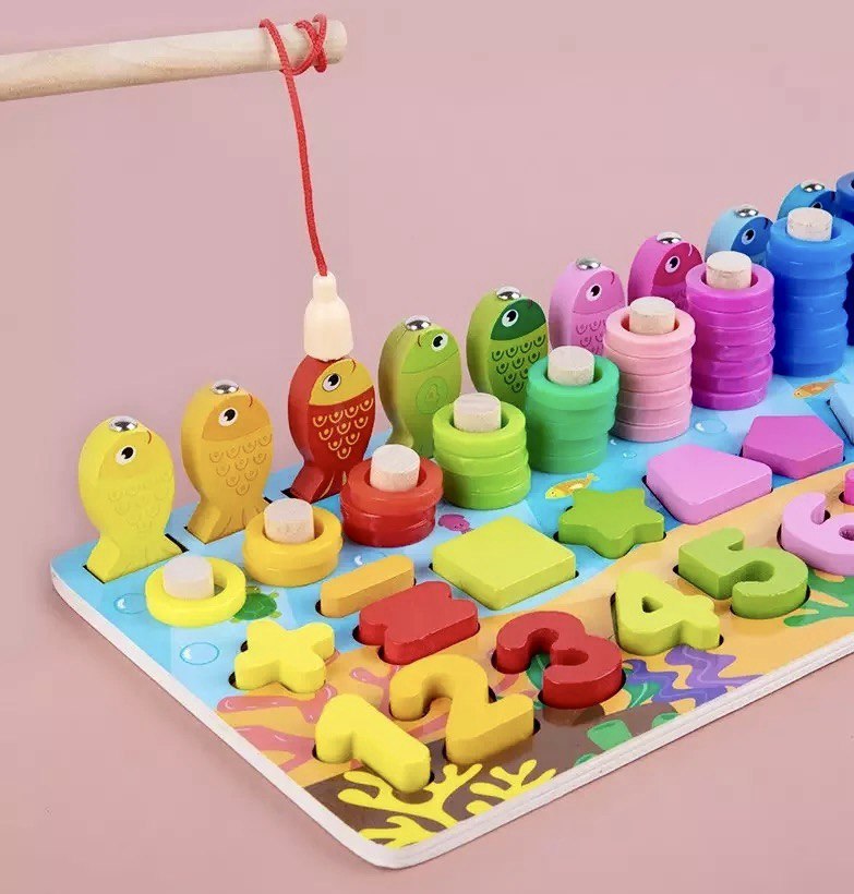 لعبة ذكاء خشبية 6 في 1 تعليم الارقام صيد السمك