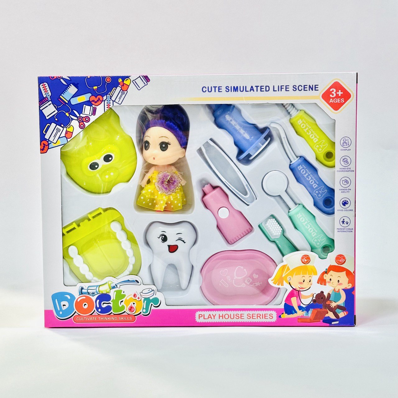 لعبة طقم دكتورة اسنان مع دمية للبنات عمر 3 سنوات وأكثر