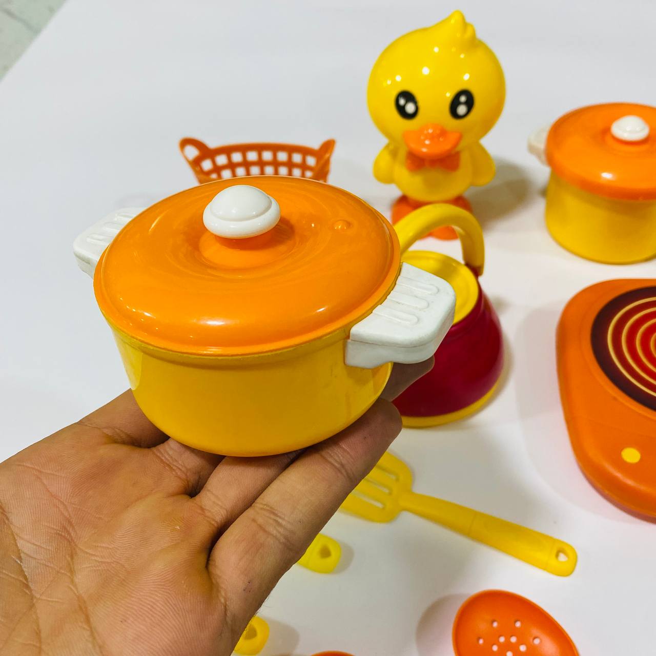 لعبة طقم مطبخ بطوط اصفر مع لعبة وعدة كاملة